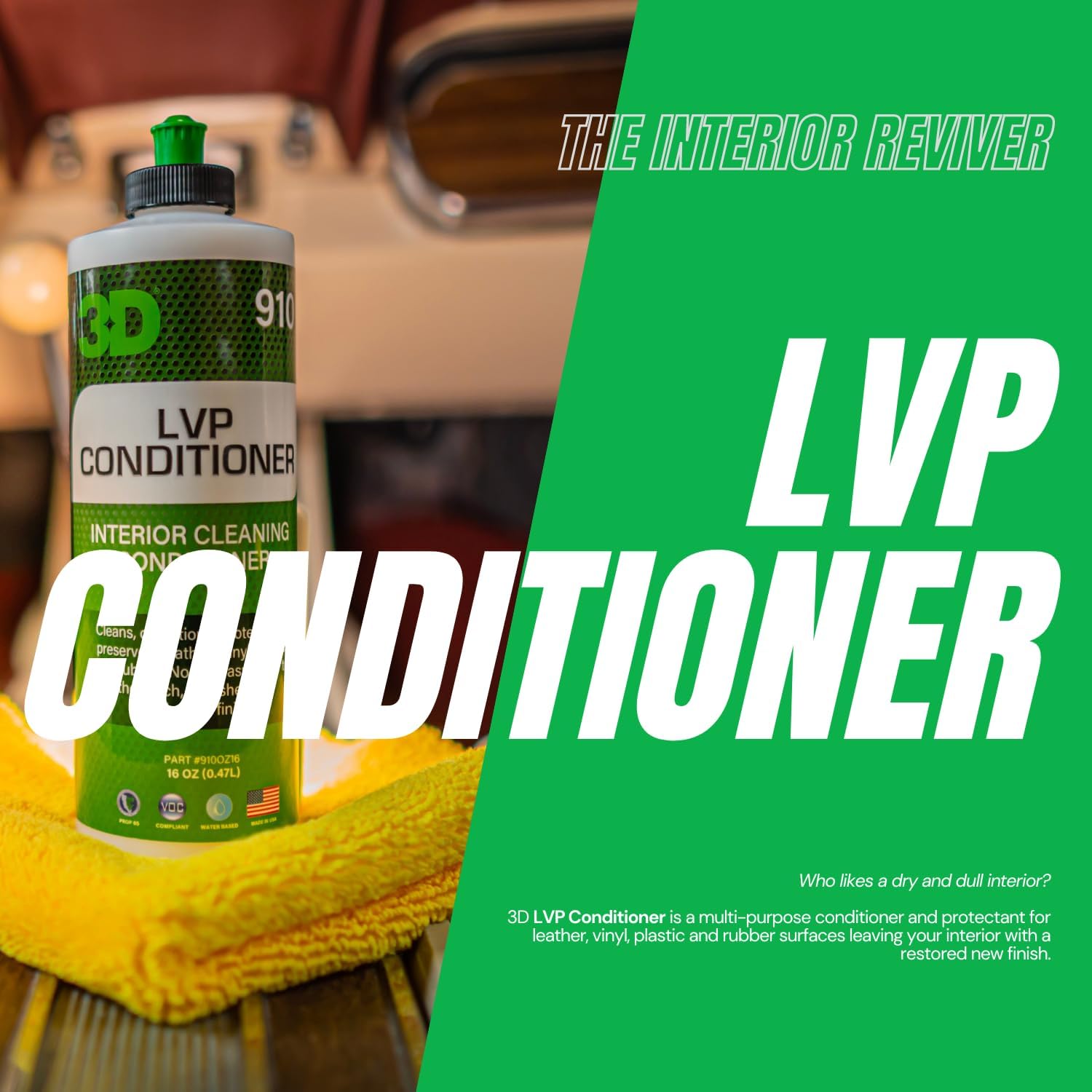 - Restores & Protects Modern Interiors: 3D Leather, Vinyl & Plastic Conditioner is engineered for today’s high-tech materials—bringing tired leather, vinyl, and plastic back to life while protecting against UV rays, cracking, and premature aging for that showroom-fresh look