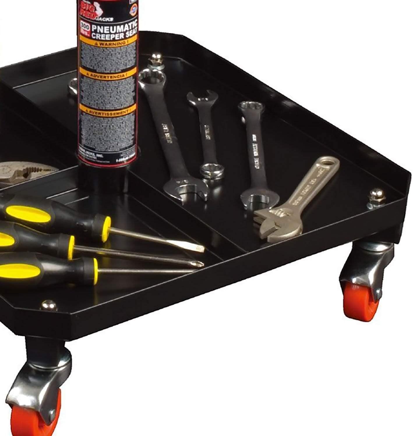 BIG RED TR6350 Torin Rolling Pneumatic Creeper Garage/Shop Seat: Padded Adjustable Mechanic Stool with Tool Tray Storage, Red Large