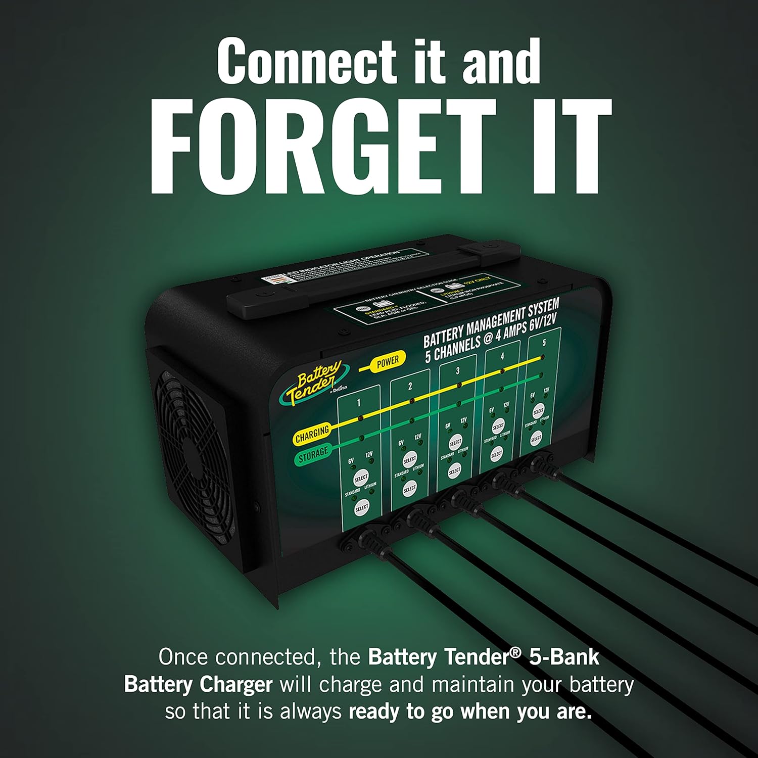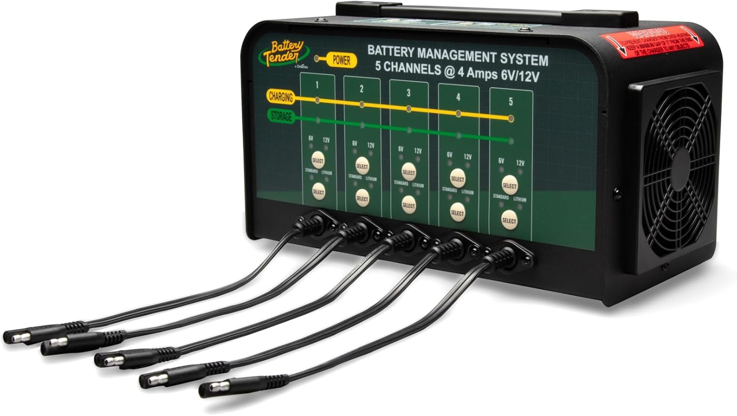 - 5 Charging Stations: Charge up to five 12 volt or 6 volt batteries at 4 AMPs simultaneously; automatically switches from full charge mode to float charge mode for optimal long-term battery health