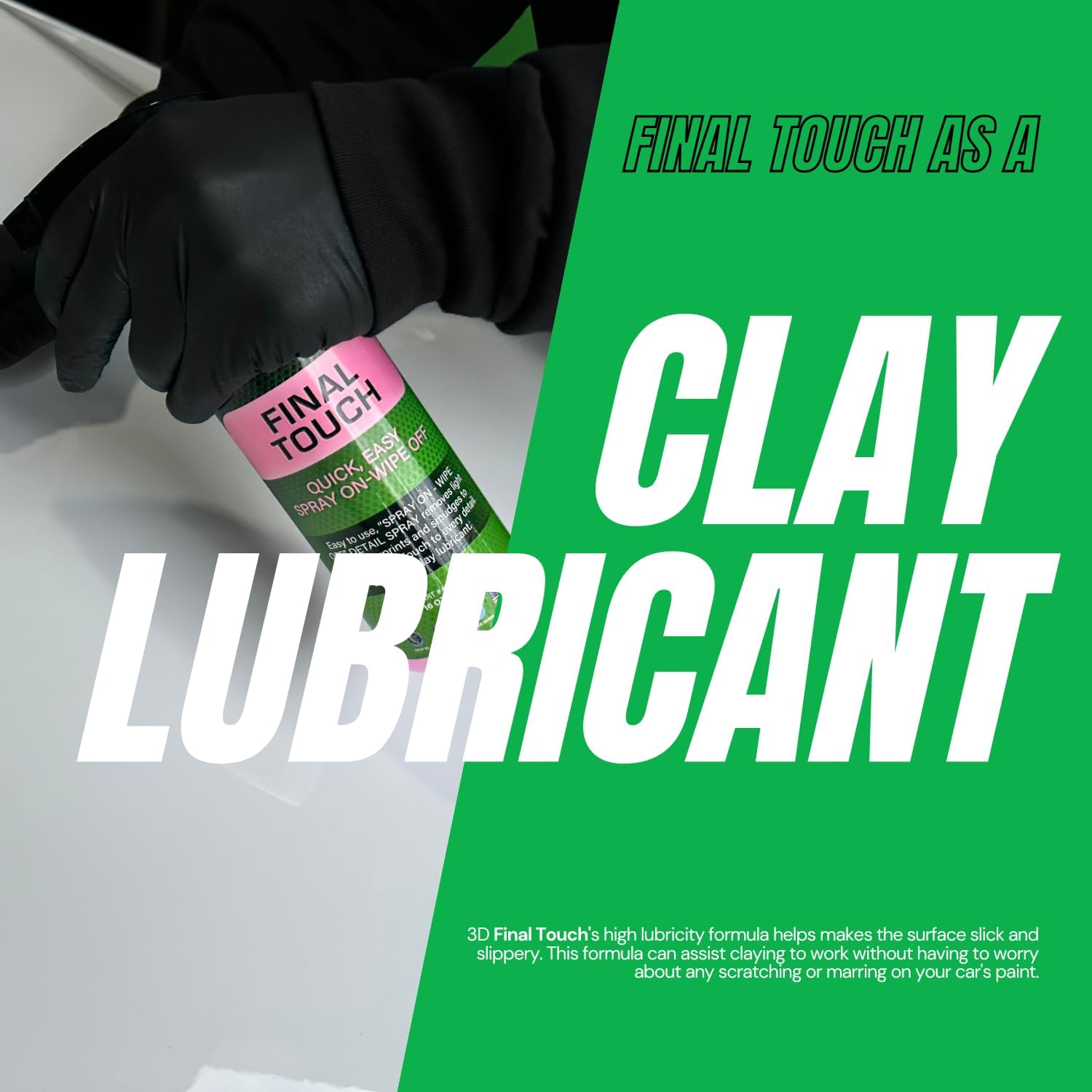 - MULTI USE … Use 3D Final Touch as a detail spray and also as a clay lubricant or polishing pad primer prior to claying your car!