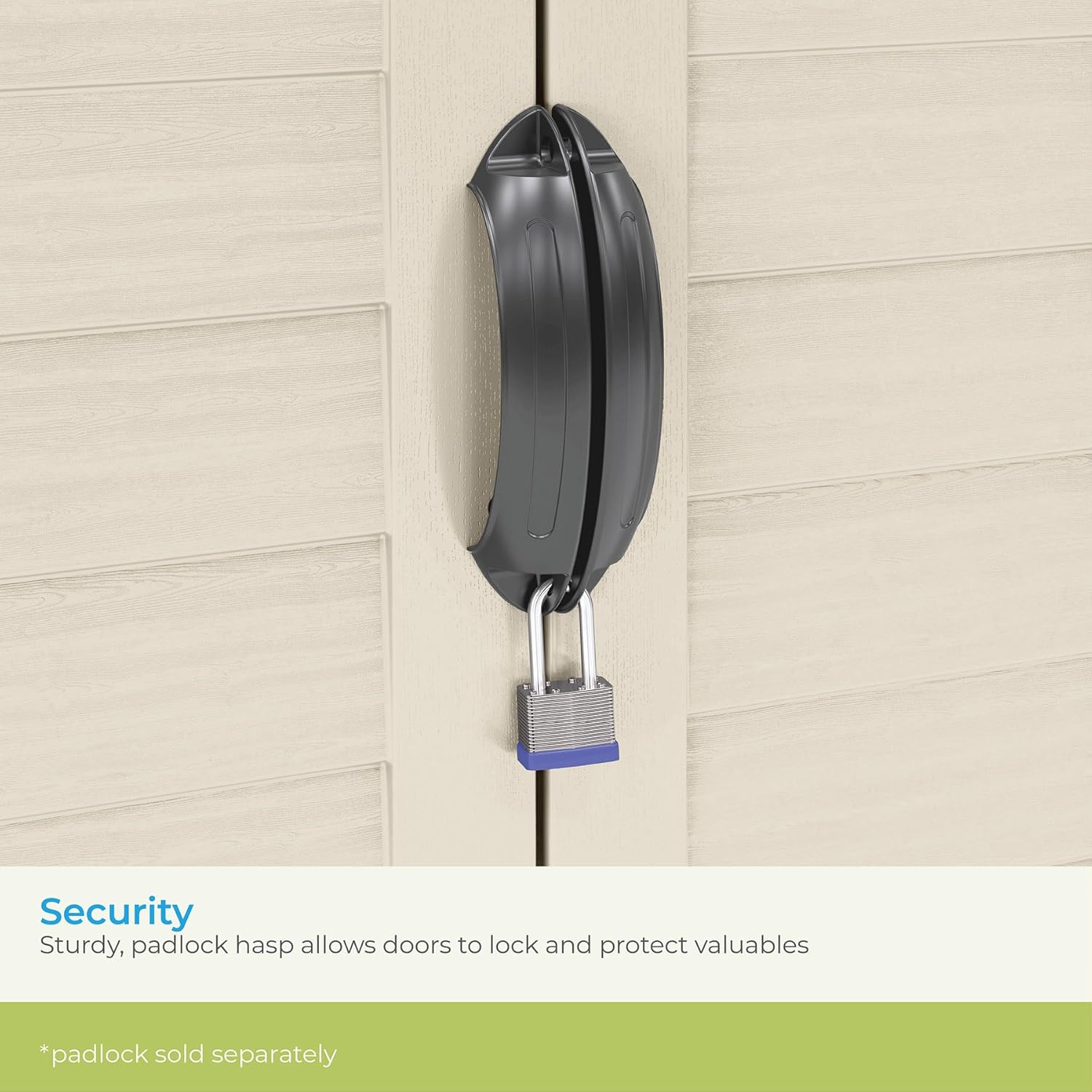 - LOCKING DOORS: Equipped with a robust padlock hasp, the double doors ensure your belongings stay safe and secure while offering easy access when needed