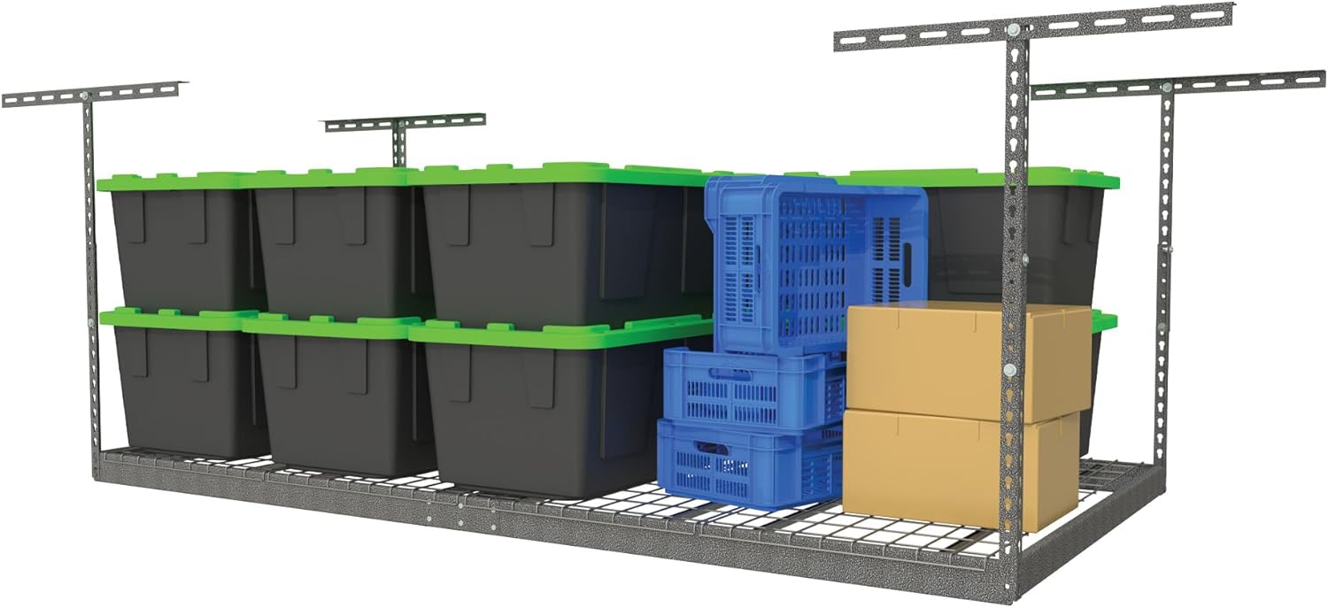 - MORE STORAGE, LESS CLUTTER: Overhead storage helps get things out of the way to save space in your garage. A hanging storage system for your garage is a great space saver. You can utilize all the space in your ceiling for more storage and better organization. With all your newfound freedom, use your garage as a gym or hobby room!