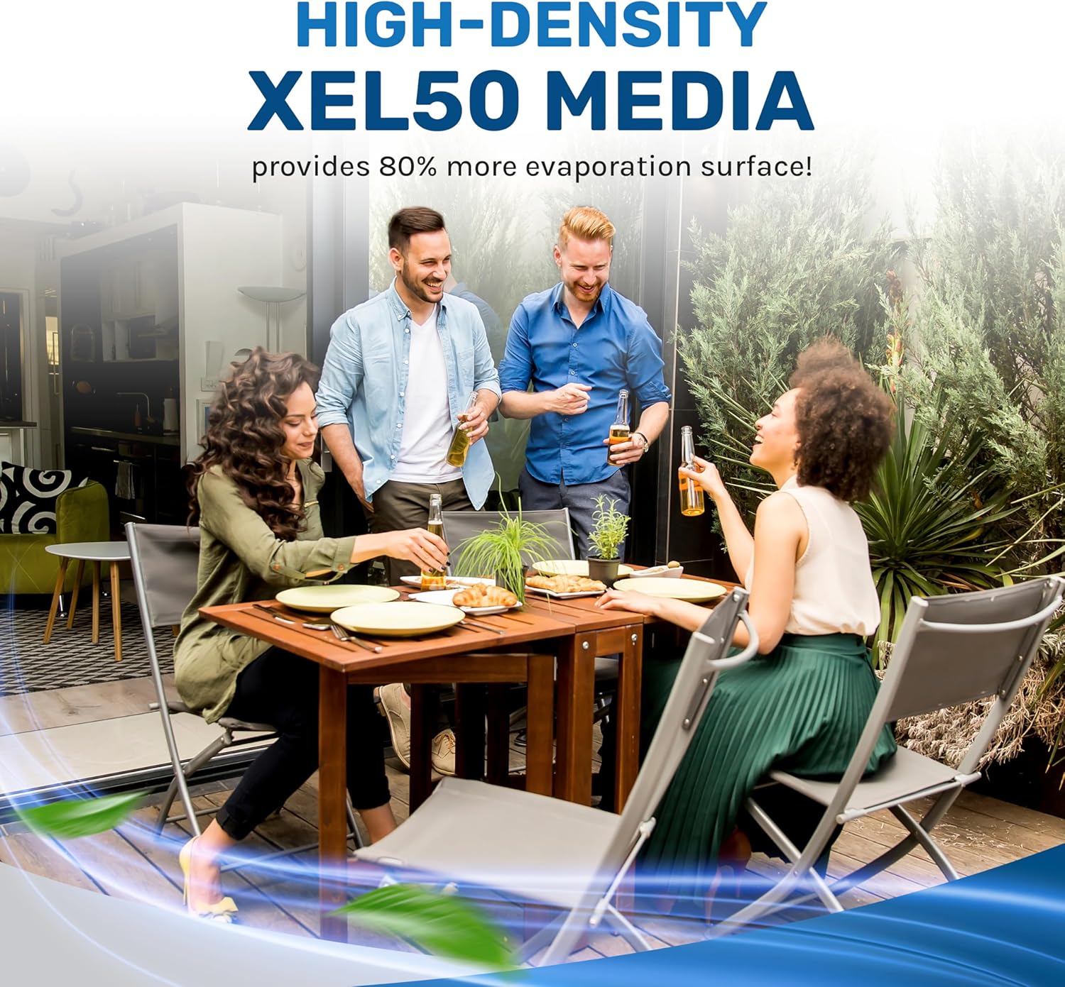 - Enjoy Continuous, Quiet Cooling: Molded with a lightweight polypropylene resin, this cooler with 14.6-gallon tank reduces refills thanks to its 80% larger evaporation surface. This portable evaporative cooler reduces noise and vibration for a serene area.