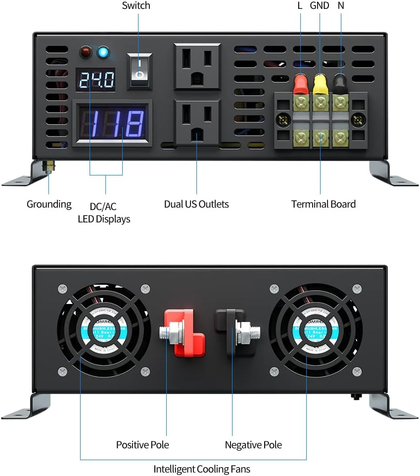 - The DC to AC Power Inverter Converts 24V DC power from external battery to 110VAC 120VAC Power for AC appliances, Full power of 3000W Rated Power,6000W Surge Power.