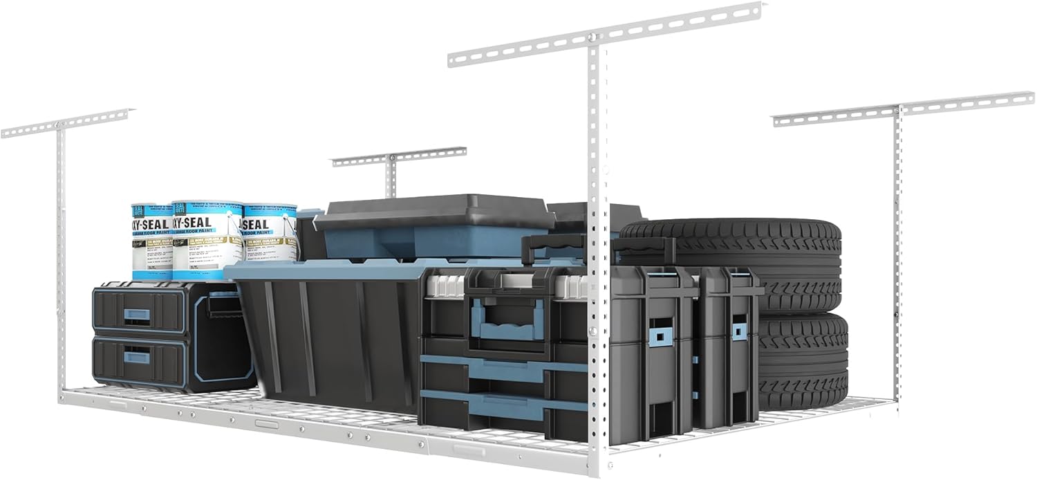 - Stability & Safety: With our specially designed longer ceiling brackets attaching to two joists and integrated grid design, FLEXIMOUNTS overhead garage storage racks are more stable and secure compared to others.