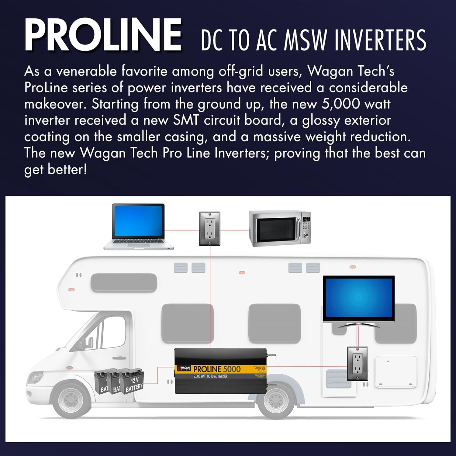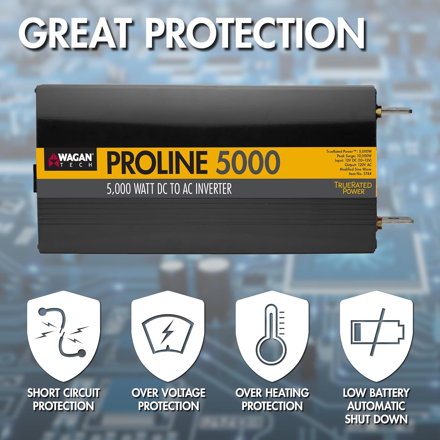 Wagan EL3744 12V 5000 Watt Power Inverter with Remote Control, 10000 Watt Surge Peak Proline Power Converter for Home RV Camping Van Life Off Grid