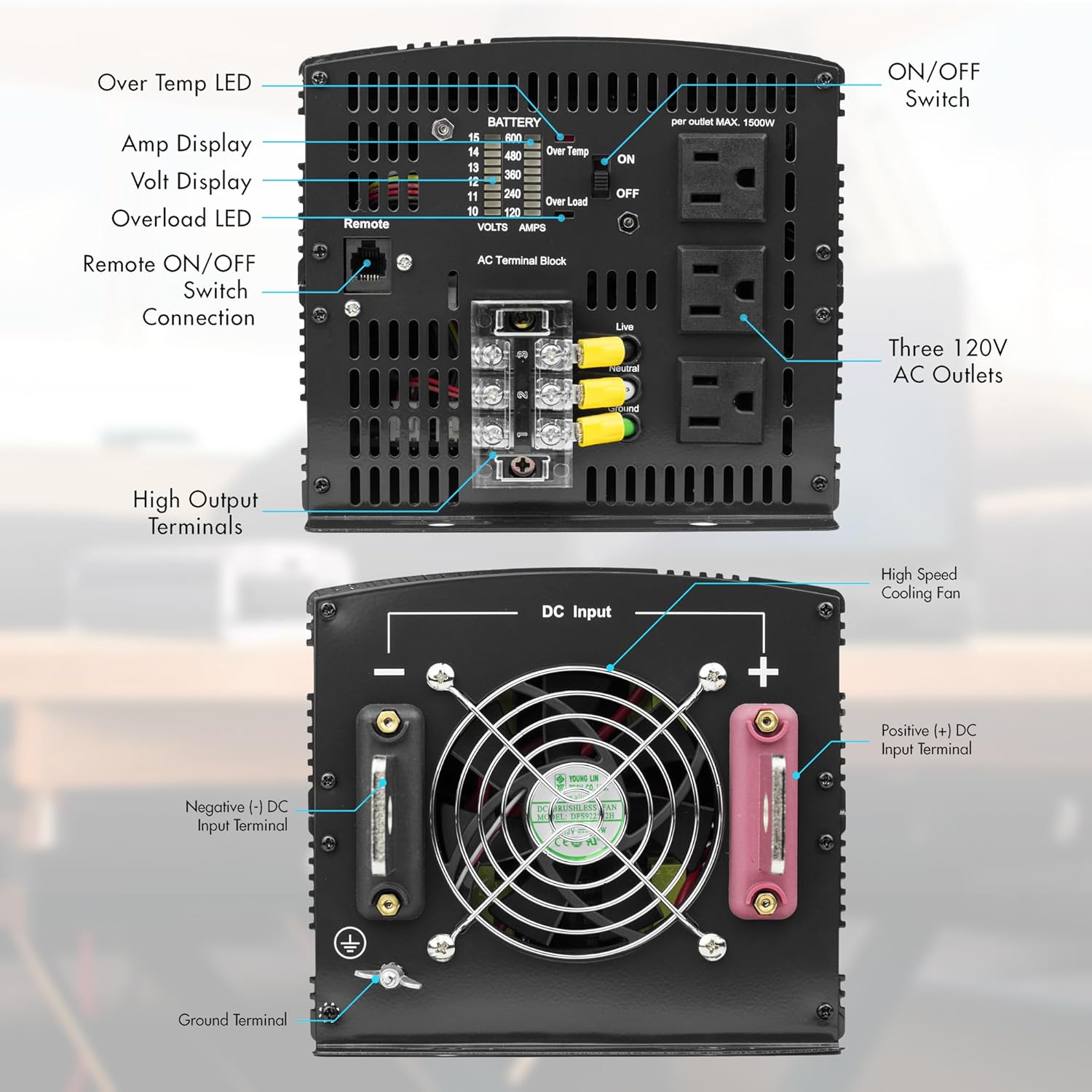 - AWESOME FEATURES - 3 x 120V AC Outlets and 1 High Output Terminal Block