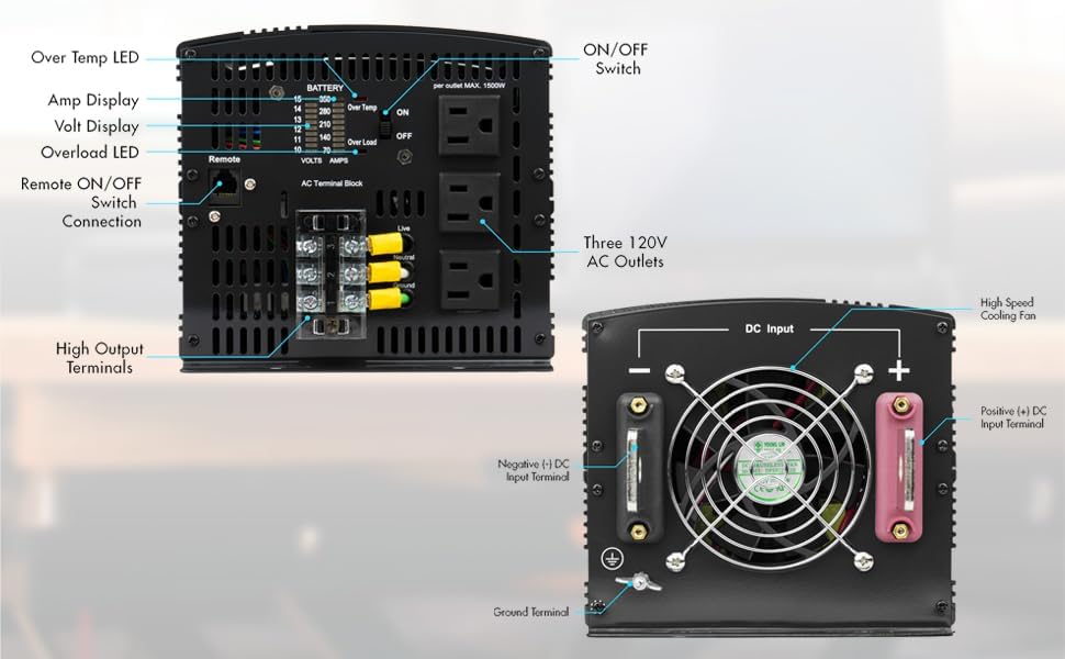 - POWERFUL INVERTER - 3000 Watts Continuous True Rated Power and 6000 Peak Surge Power