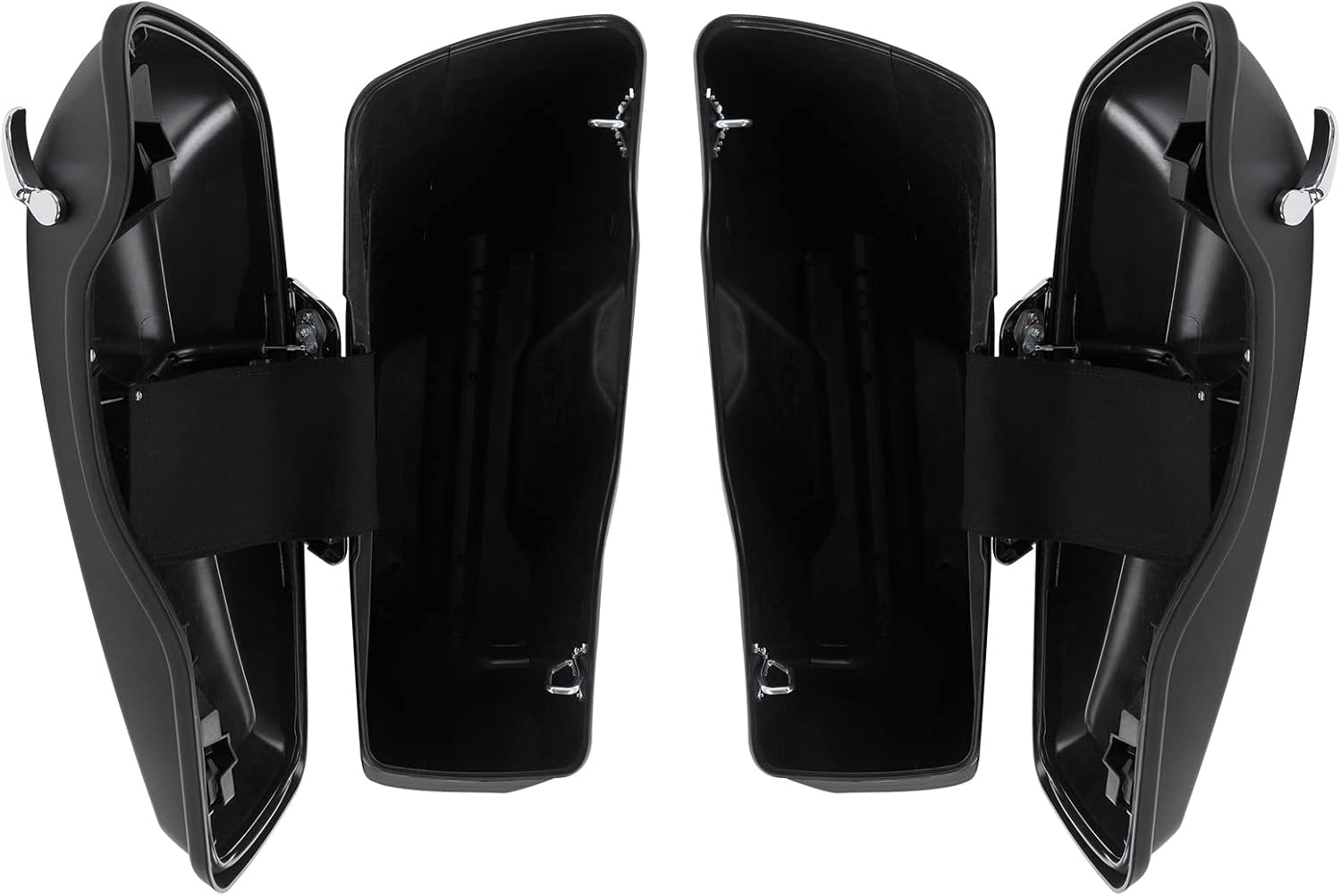 - Designed for use Replace with OEM hardware, locks and saddlebag supports;Saddlebags are stretched 5" longer than stock to cover the muffler front to back and give that stretched look