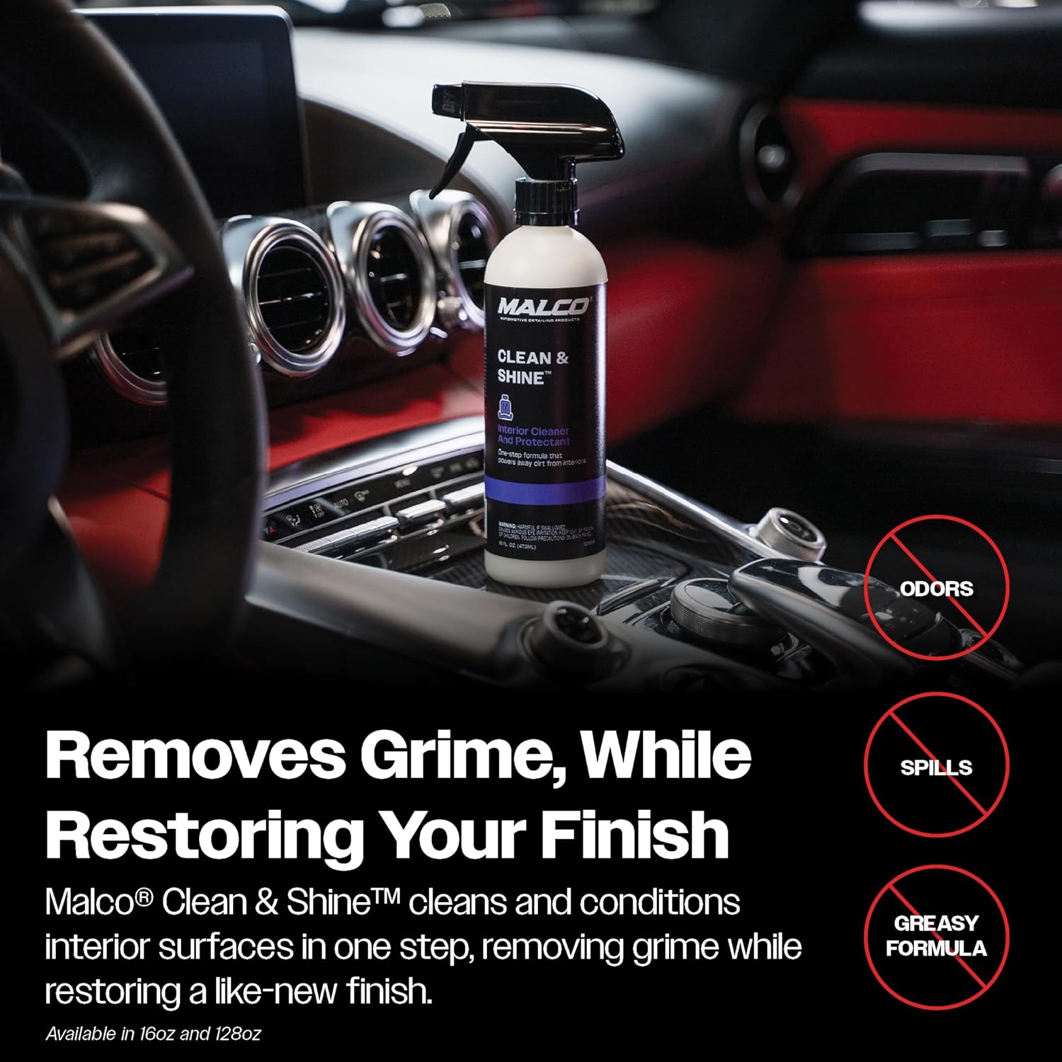 - THE "ALL-PURPOSE" CLEANER: Do you have stains, spills or dirt that is keeping your car's interior from looking its best? Learn what the Pros use! Malco’s Clean & Shine is one of the leading all-purpose cleaners on the market!