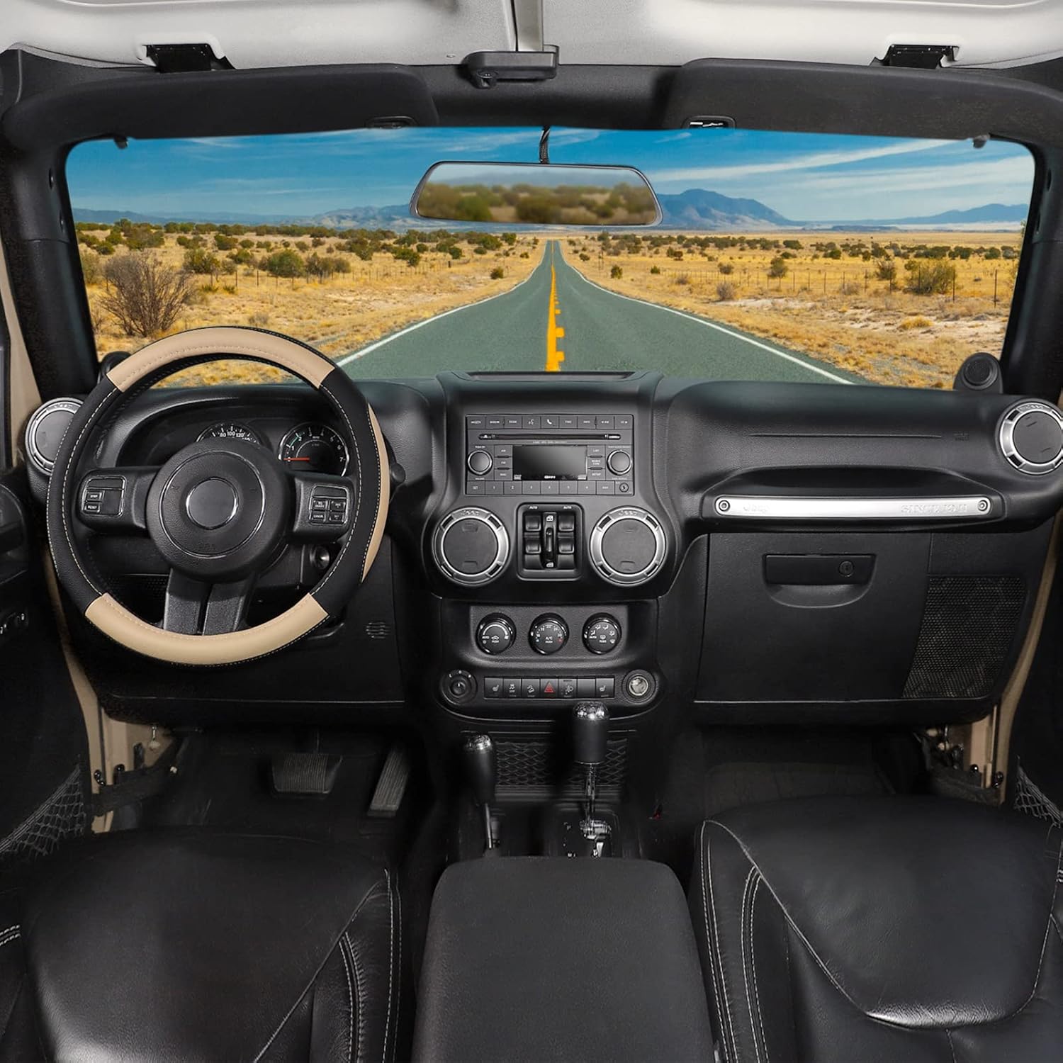 - NO MORE STICKY: The auto steering wheel cover is comfy to hold, it absorbs the hand-sweat that the summer heat causes, and allows you to grip the steering wheel much better.