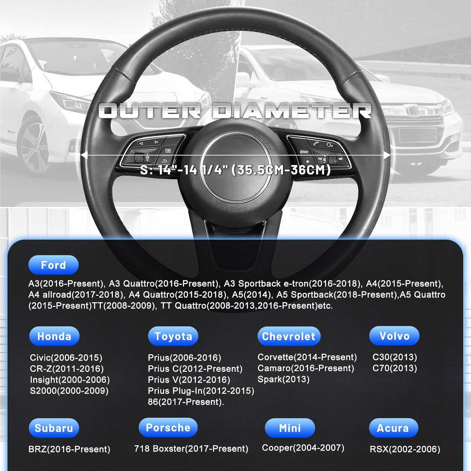 - READY TO INSTALL: Warm up the steering cover, and slip it on your steering wheel. Installation is fairly easy, any adult can install this steering wheel cover. Suitable for small size steering wheels with outer diameter of 14-14 1/4 inches, please carefully measure the size of your steering wheel before purchasing.