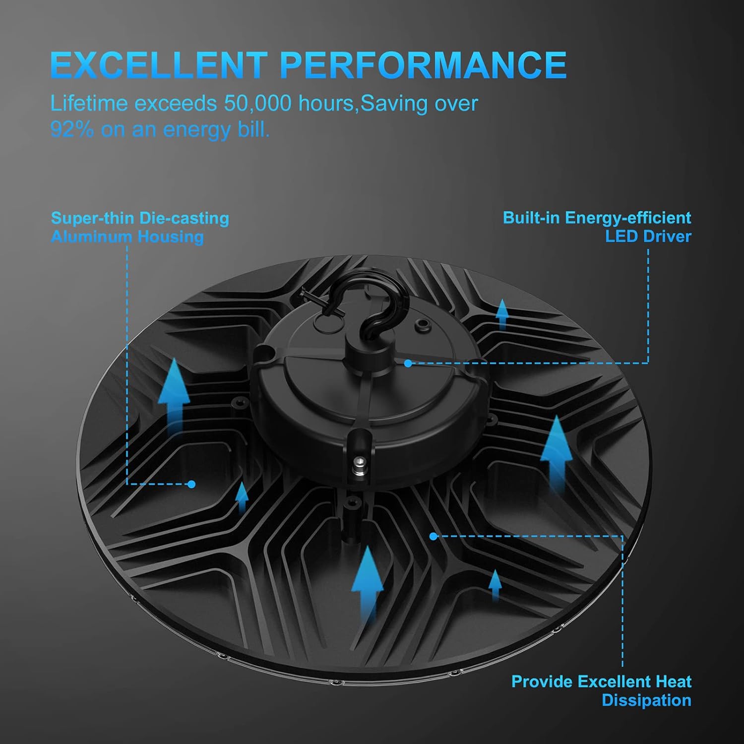 - ✅ Durable and Long-Lasting : LED high bay light equipped with industrial grade material of durable brand SMD2835 chips, die-casting aluminum body of excellent heat dissipation, energy-efficient LED driver and protective PC cover, lasting for more than 50,000 hours. IP65 rated waterproof and dustproof design, which is ideal for indoor or outdoor using