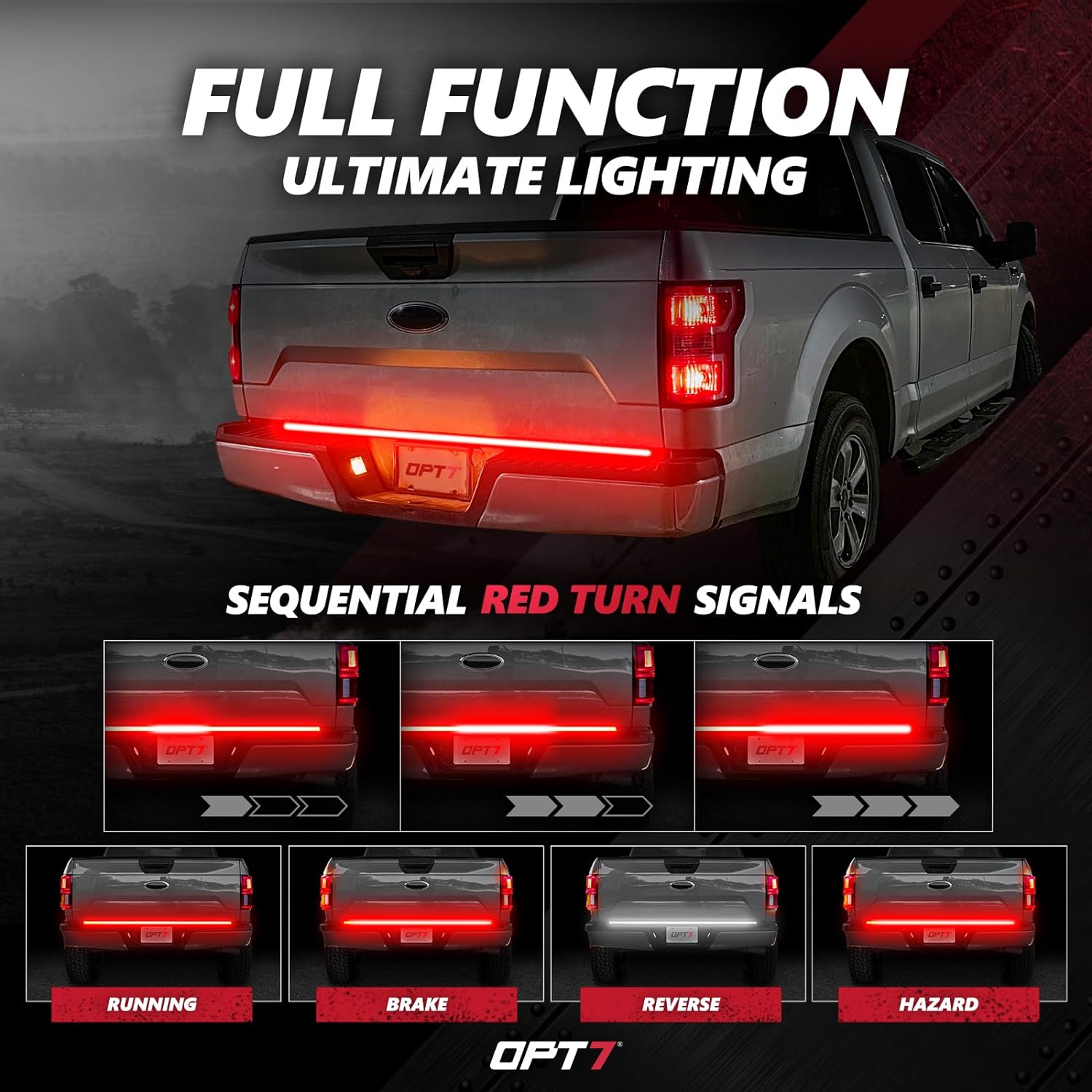 OPT7 60" Redline Triple Row LED Tailgate Light Bar w/Sequential RED Turn Signal - Weatherproof Rigid Aluminum Frame Light Strip for F150 RAM Silverado Sierra - Full Functions Reverse Brake Running
