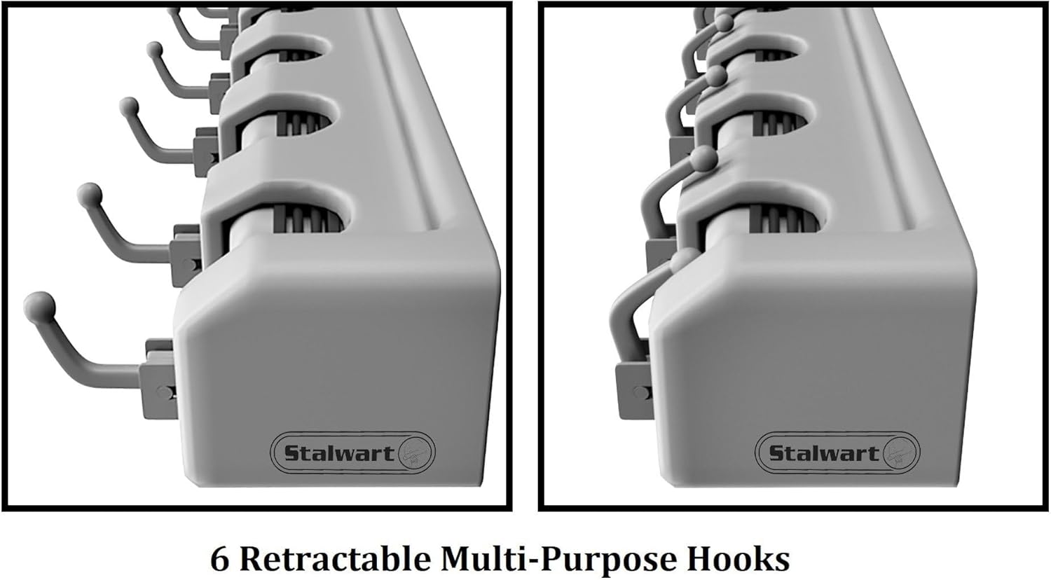 - 6 RETRACTABLE HOOKS - Equipped with 6 hooks, this space-saving home broom holder wall mount hub is the perfect spot for anything you need to hang in your garage, kitchen, shed, pantry, closet, or laundry room. The hooks are retractable when not in use.