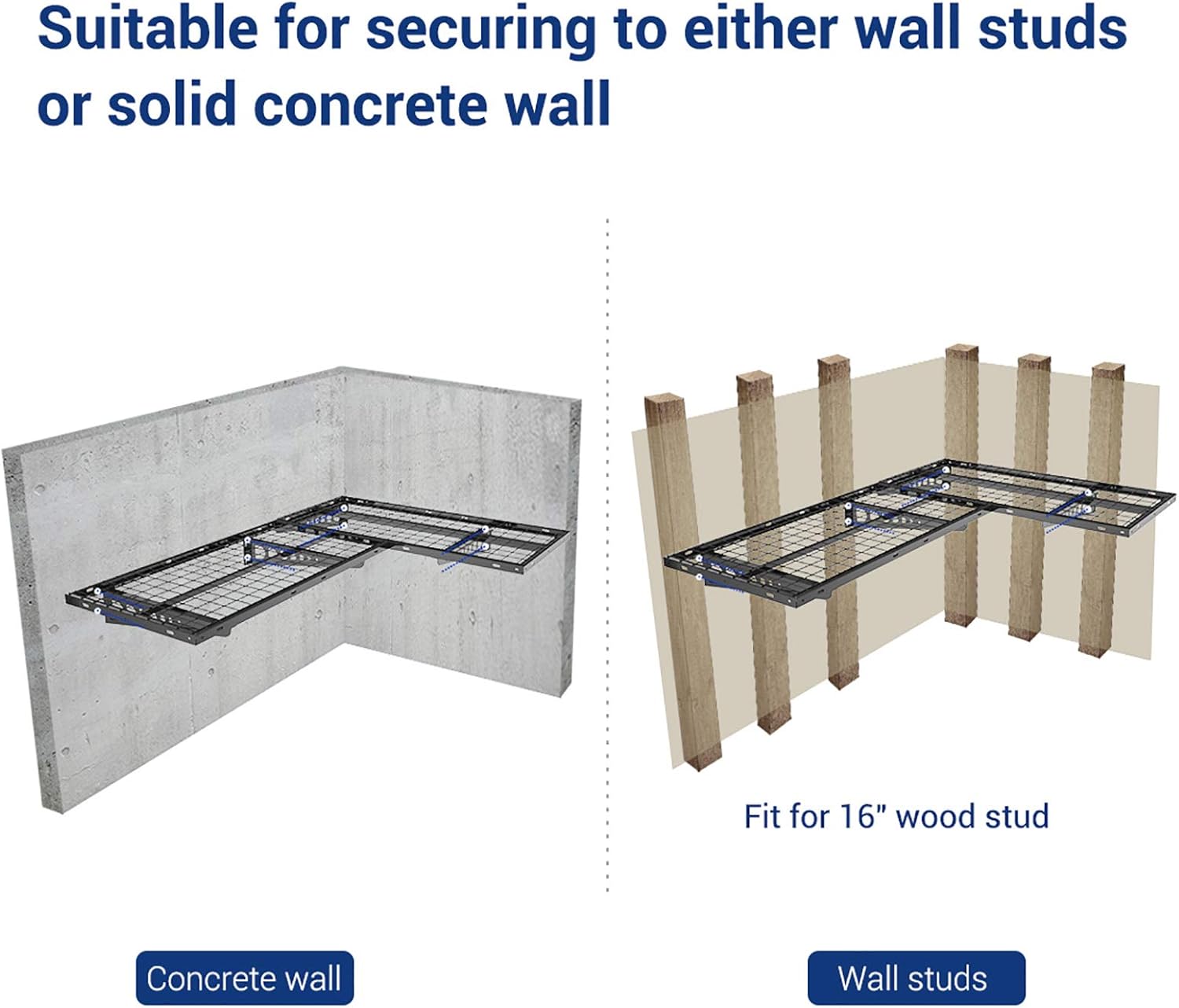 - Important: Can NOT be mounted to metal wall. Only suitable for 16'' wood studs/joists and concrete wall.