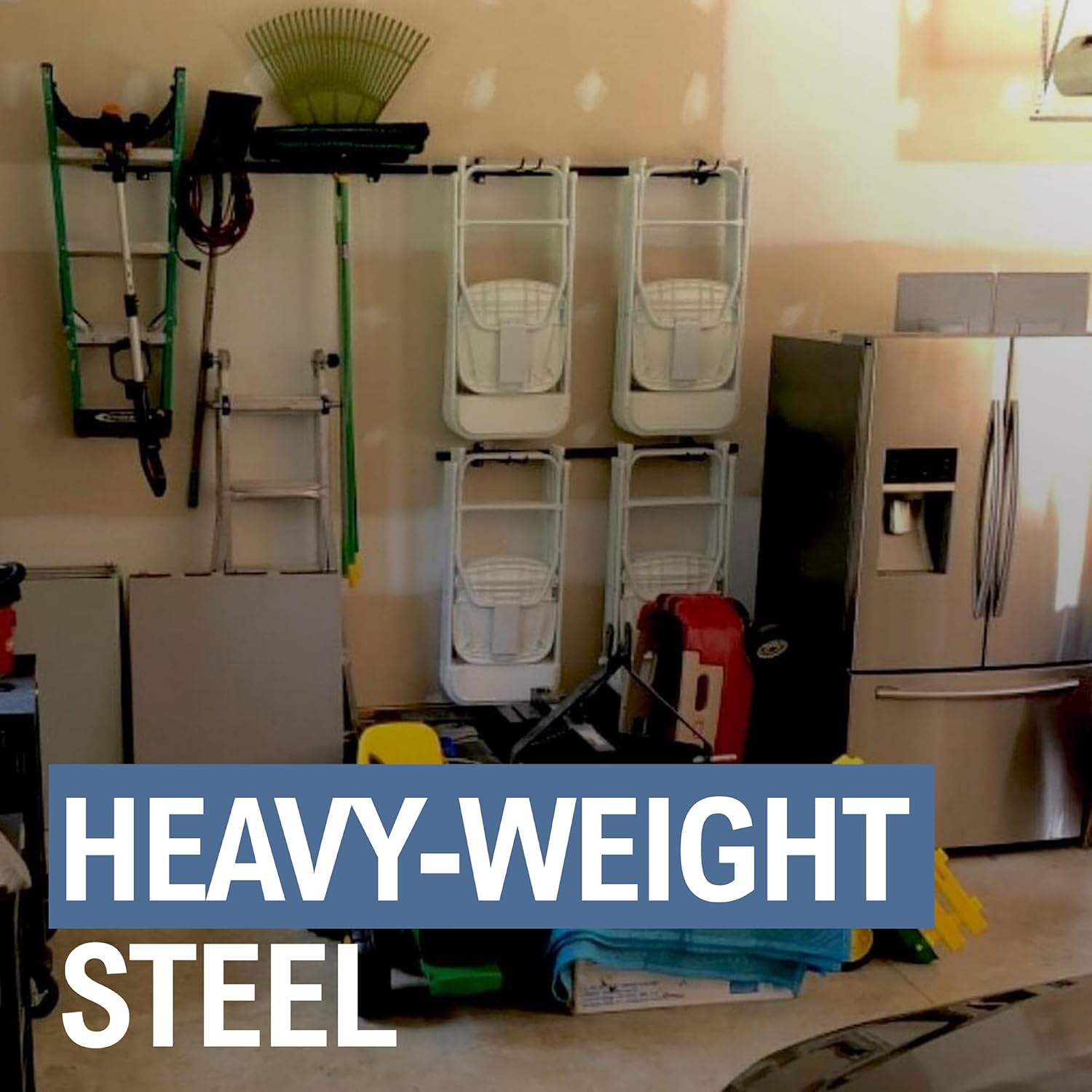 - Heavy Duty Steel Construction – Built from solid, powder-coated steel, this folding chair rack supports up to 300 lbs. Whether you need chair holders for storage or folding chair hangers for garage use, this durable solution is made to last for years.