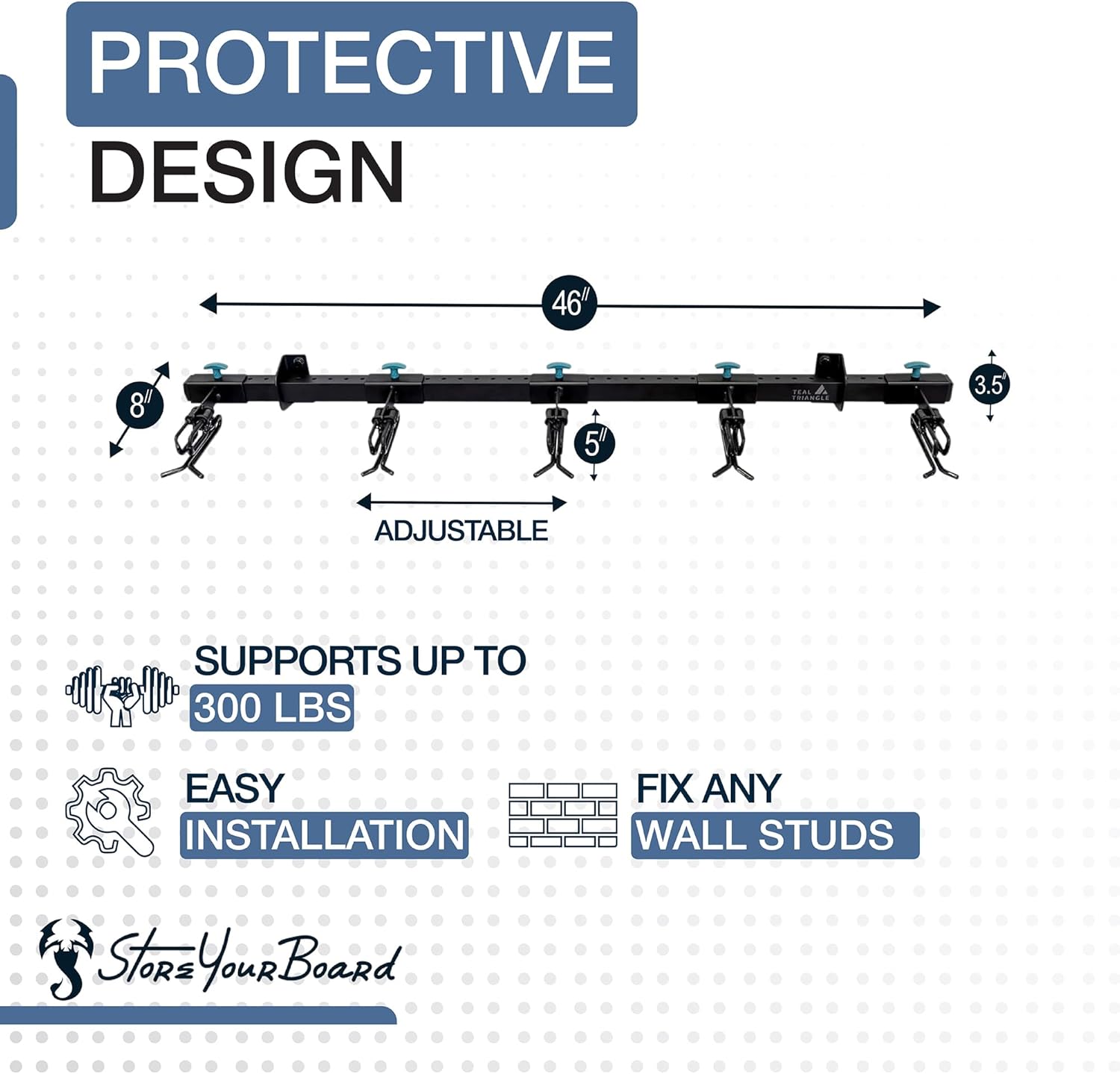 - ORGANIZED SKI STORAGE: Adjustable wall storage rack neatly holds up to 5 pairs of powder skis, rocker skis, racing skis, and all mountain skis.