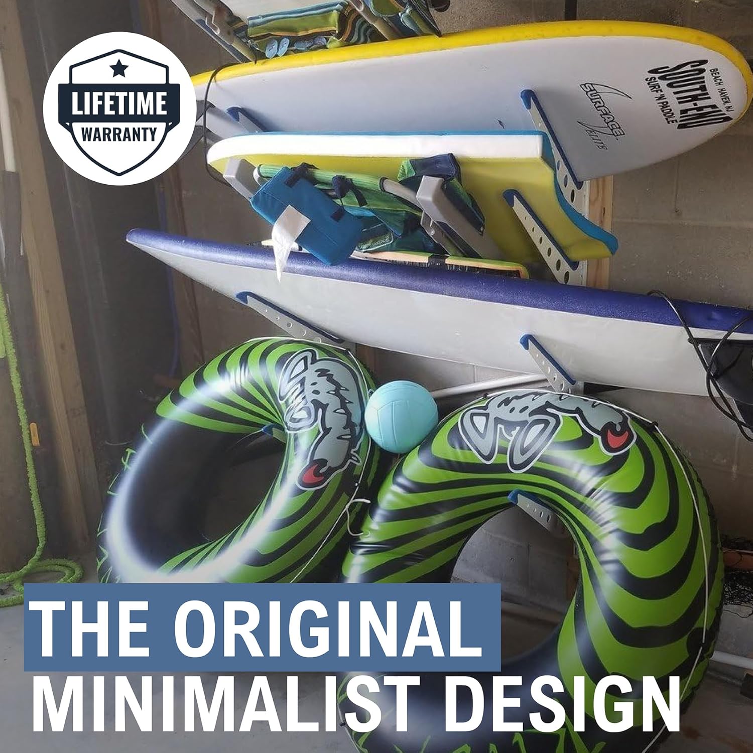 - Multi-Purpose – Also great for storing surfboards, wakeboards, fishing rods, tools, and more. Year-round storage for all your sports equipment.
