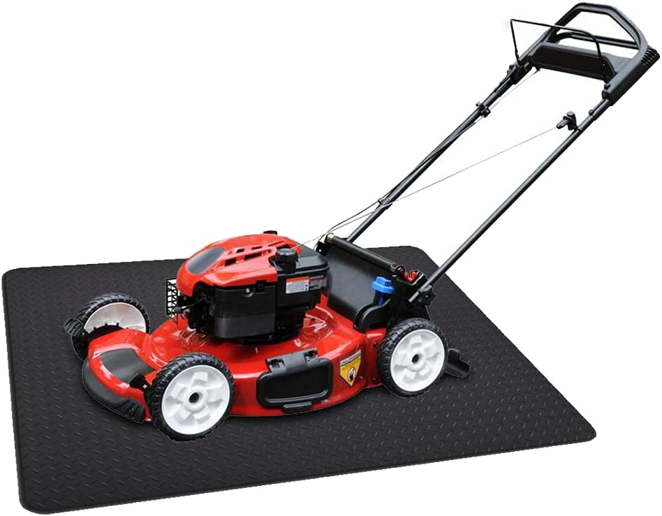 RESILIA Garage Mat, Prevents Stains Decorative Embossed Diamond Plate Pattern Black, 3 Feet x 4 Feet, Made in The USA