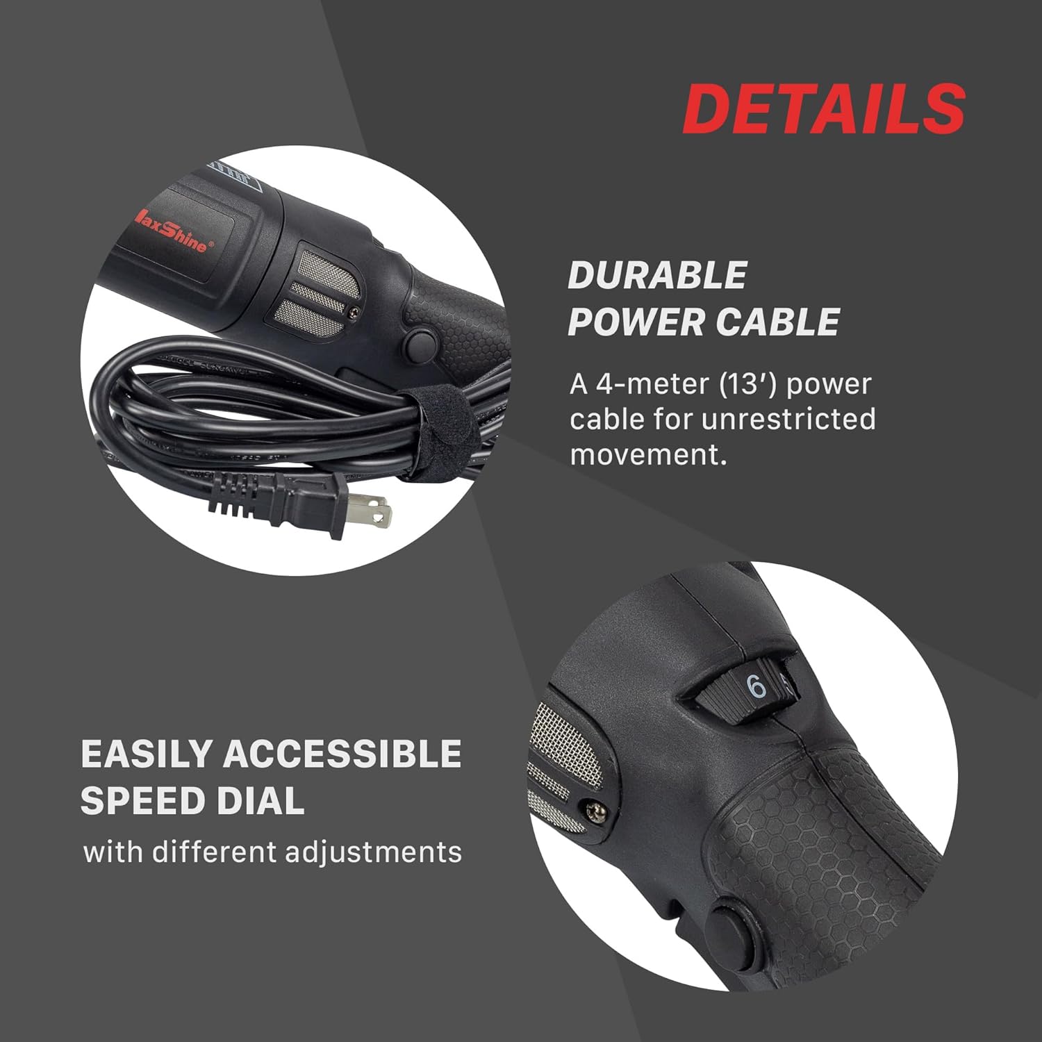 - Powerfully Efficient Motor - 1000W motor improves efficiency, guaranteeing more power and torque for faster and easier detailing jobs