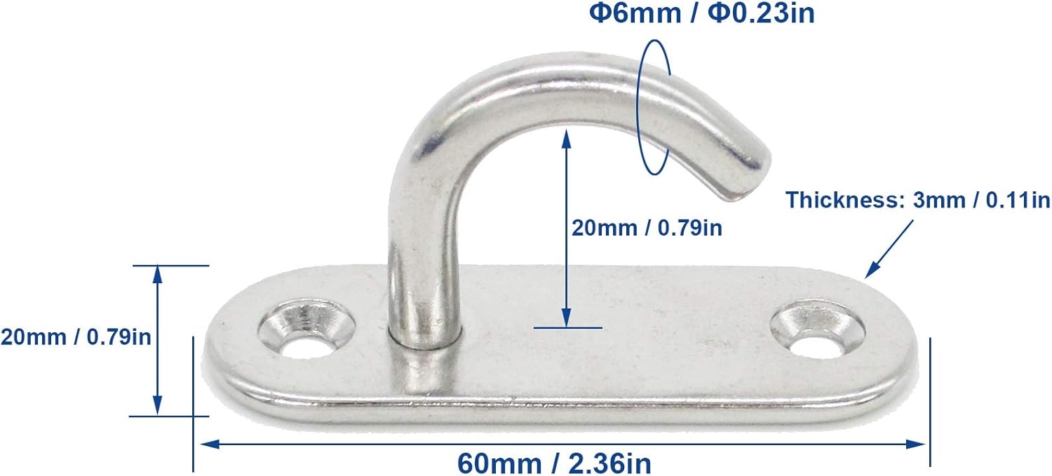 Stainless Steel Ceiling Hooks & Wall Hangers - Heavy Duty M6 Screw Mount, Rust-Proof Anchor Straps for Garage, Outdoor, Storage (4-Pack)