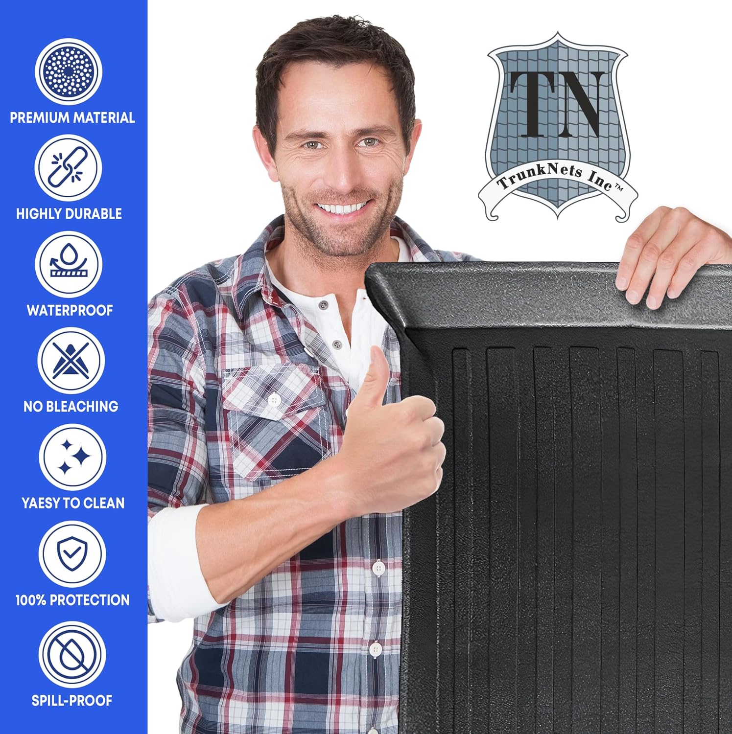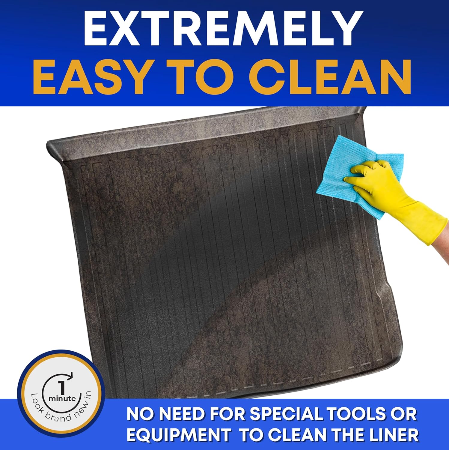 - EASY-CLEAN DESIGN - Featuring an anti-skid, stain-resistant surface, our trunk liners are a breeze to maintain. The raised exterior lip traps spills, maintaining your trunk's cleanliness. Keep it looking fresh by simply rinsing with water and watch it restore its gleam!