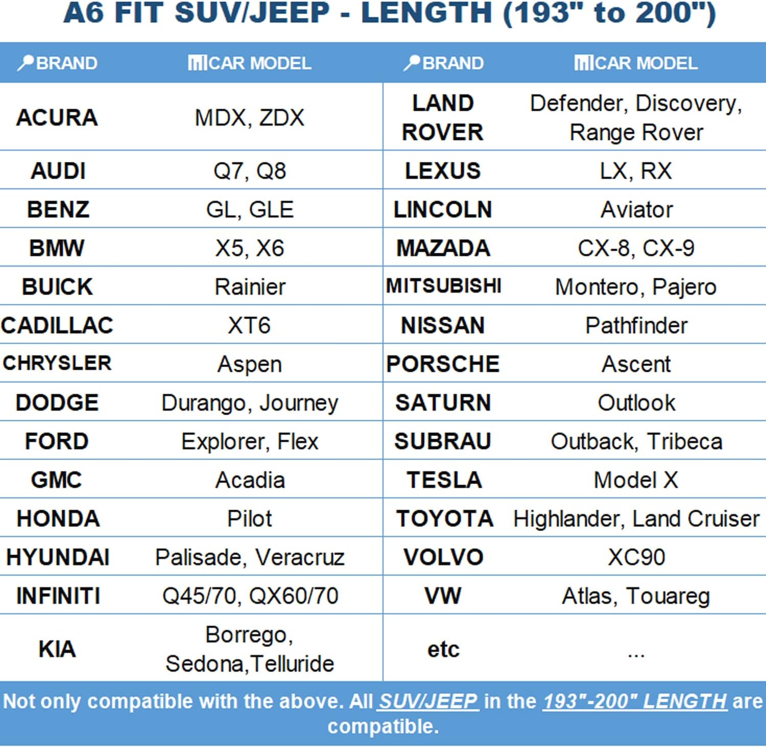 - Coverage : Full exterior coverage for SUV (Universal fit for SUV length 193-200 inch)