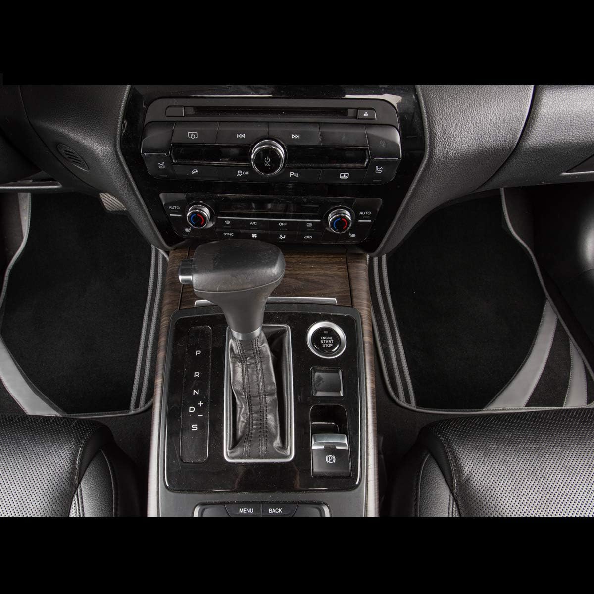- High Quality- The edges and lines are made of leather and double stitched for superior quality. The center carpet portion is soft and thick, which traps dust and dirt well and Protect your vehicle's flooring against spills, stains, dirt and debris.