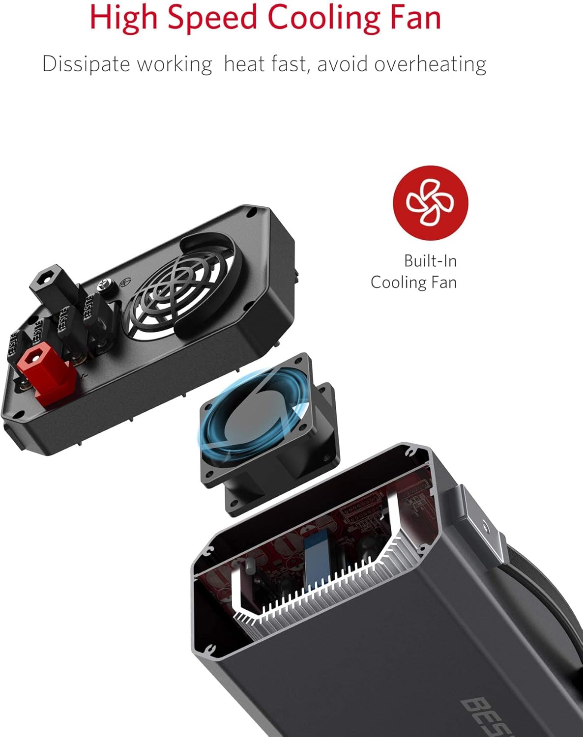 - Quiet cooling fan: Car adapter for plug outlet equipped with smart cooling fan will automatically rotate at different speed according to power load and temperature, this design can help to reduce the fan noise.Also the high speed cooling fan protect the inverter against overheating.
