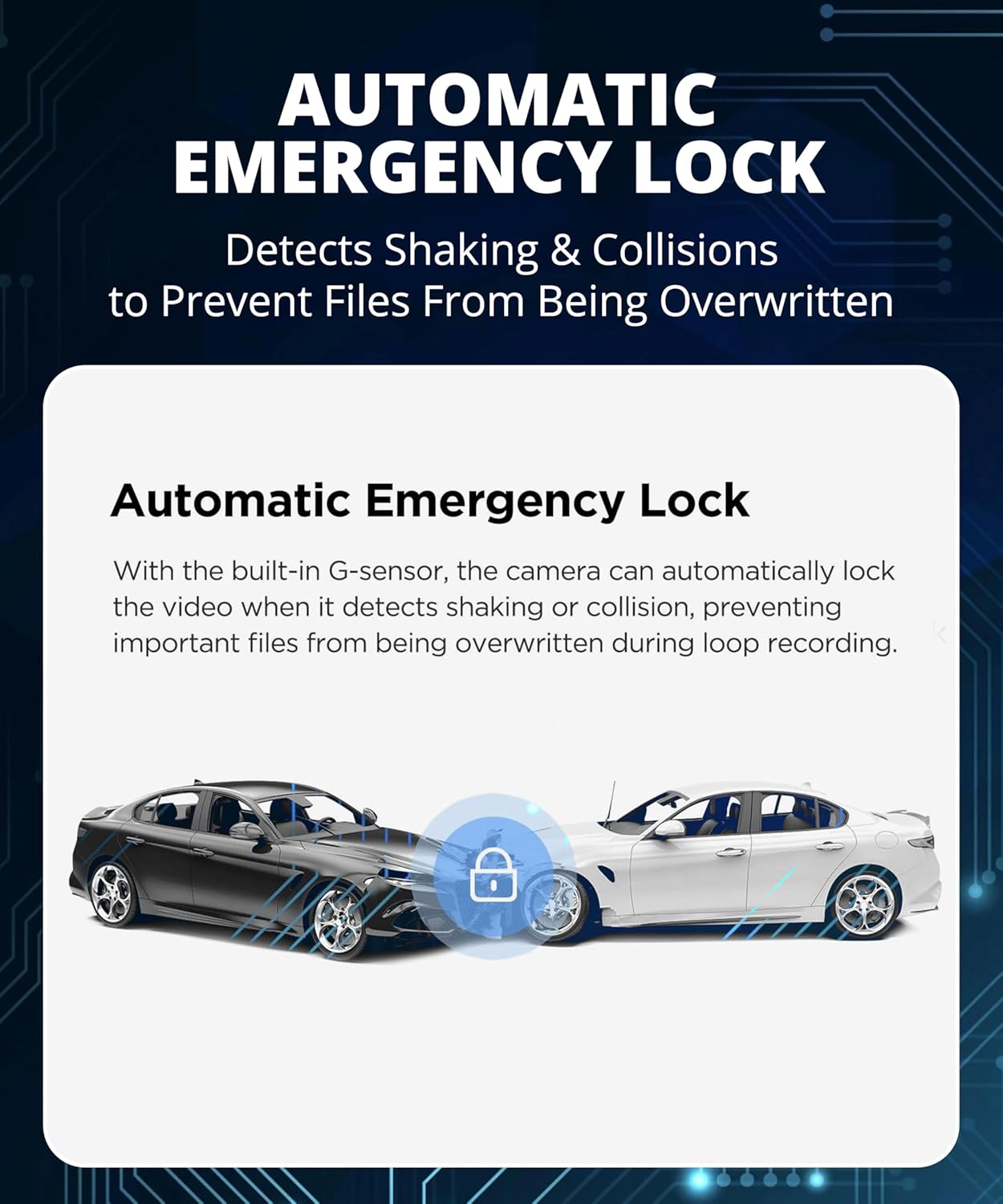 - Reliable Performance Features: Incorporates G-sensor for automatic emergency recording during sudden impacts or abrupt braking, loop recording for continuous operation, and support for microSD cards up to 256GB (U3 A2 V30 recommended). Additional features include a built-in microphone, auto start/stop functionality, and memory partitioning to keep important footage separate from all other recordings.