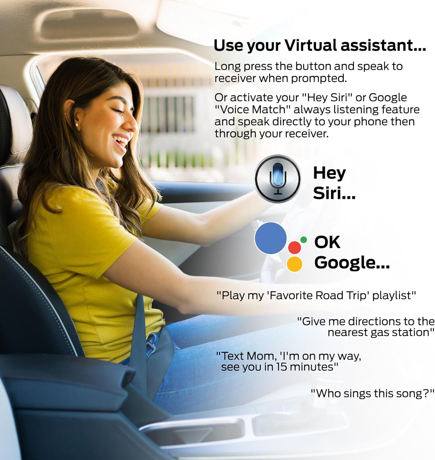 - Voice Assistant Support – Google & Siri Compatible – Activate Google Assistant or Siri with a simple button press. Use voice commands for navigation, calls, texts, and music playback without touching your phone, keeping your focus on the road.