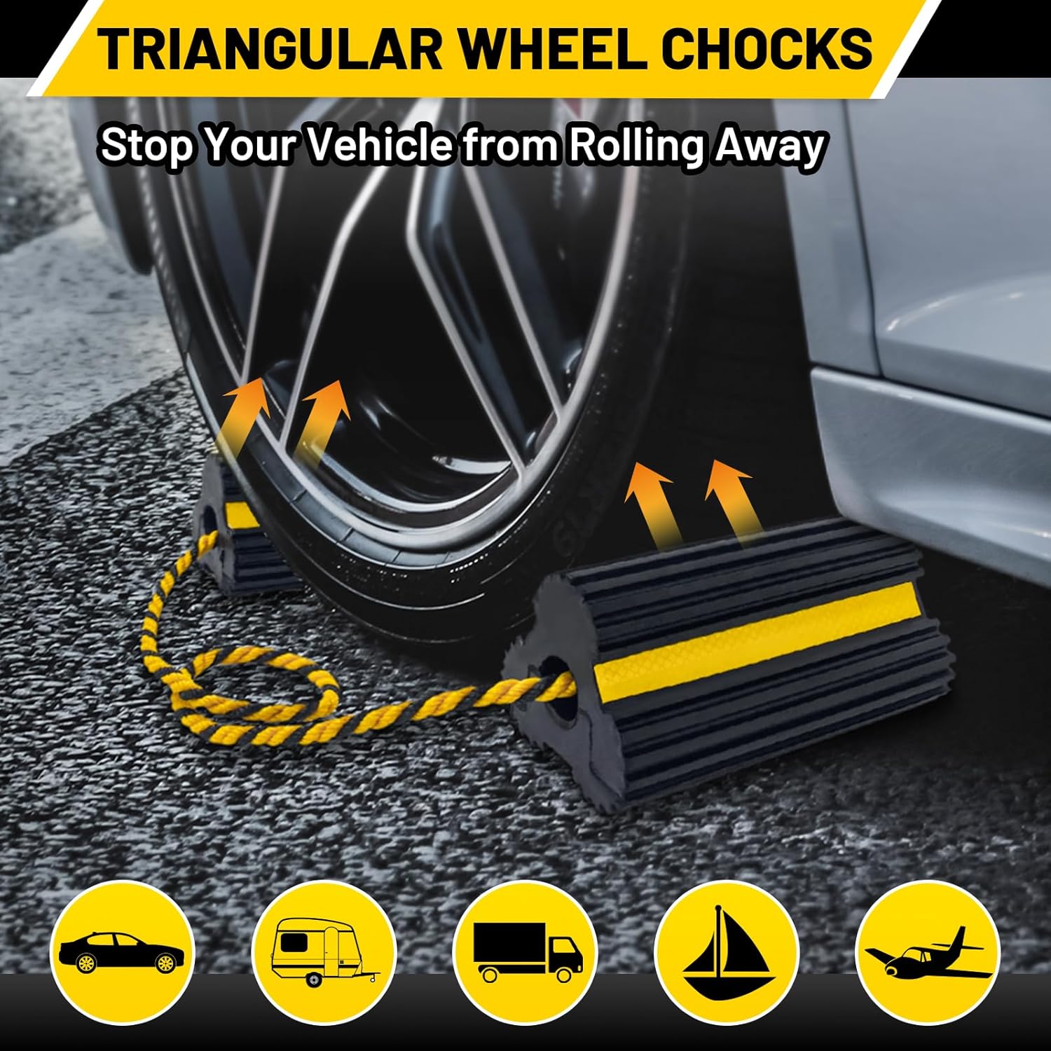 - Convenient: Our wheel chock block with high grip edges, convenient to use and transport. Anti-slip design help the chocks stay in place