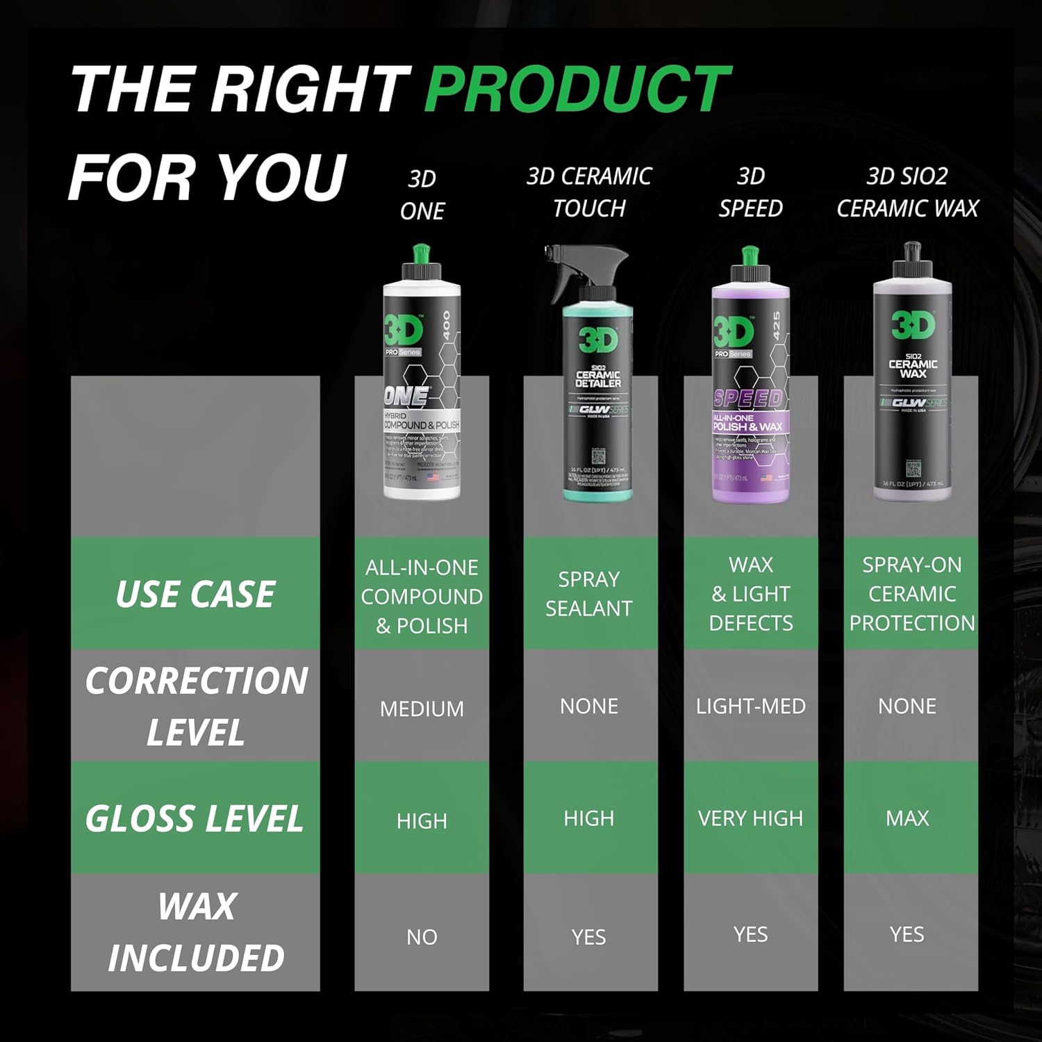 - Pro Grade Quality: Developed with over 25 years of car care experience, 3D One is proudly made in the USA and trusted by pros worldwide. Expect high-performance results that stand up to any job, right from your home garage or detailing shop