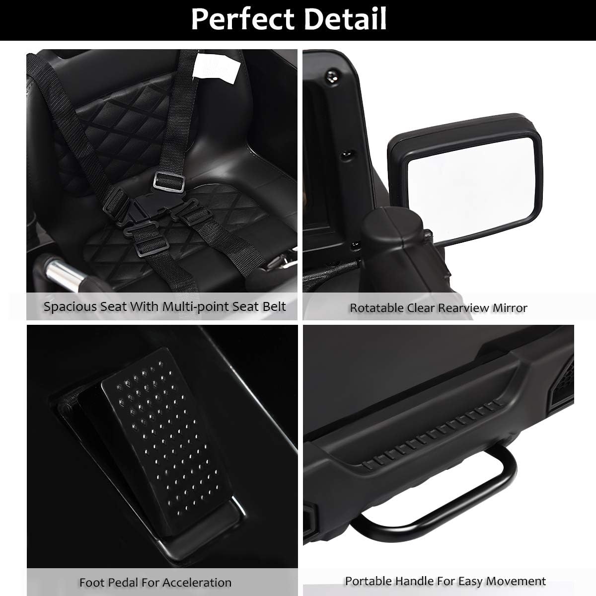 Costzon Ride On Car, 12V Battery Powered Electric Ride On Truck w/Parental Remote Control, LED Lights, Double Open Doors, Safety Belt, Music, MP3, Spring Suspension (Deluxe Black)