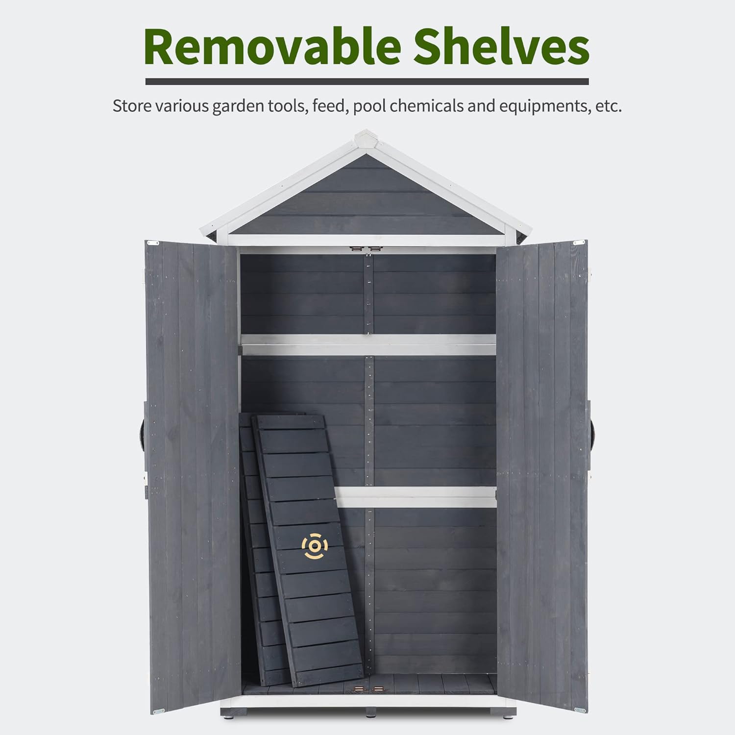 - Space-Saving Large Shed: This tall, compact wood shed is ideal for hiding messy garden tools without taking up too much space; Suitable for gardens, patios, decks, porches, or garages, it provides ample storage in a compact footprint; Dimensions: 35.4" (L) x 18.9" (W) x 70" (H)