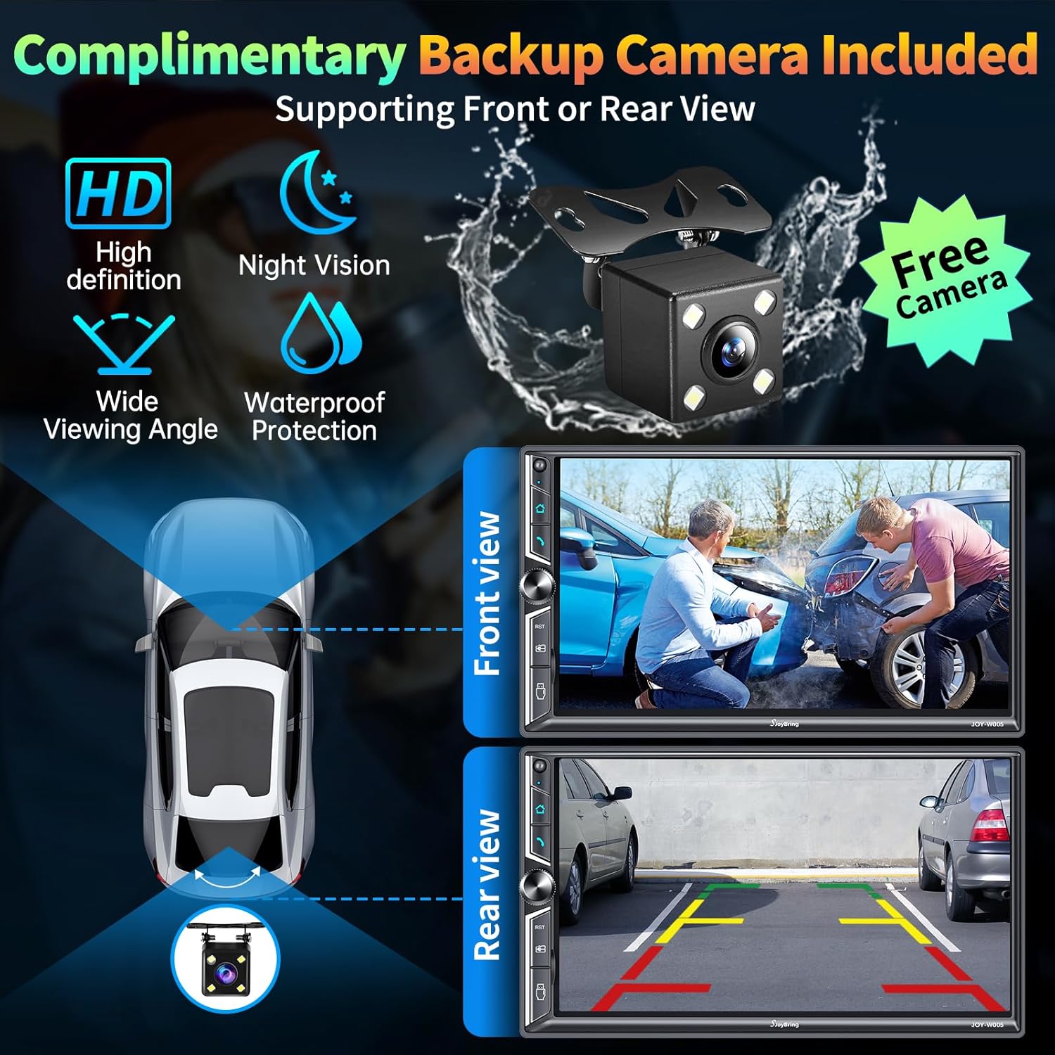 Double Din Car Stereo with Wireless Apple CarPlay and Android Auto, Bluetooth 5.3 Car Play, Mirrorlink, 7" HD Touchscreen, Backup Camera, 240W 4.2 CHN 2 Subwoofers Outputs, AM/FM Car Radio