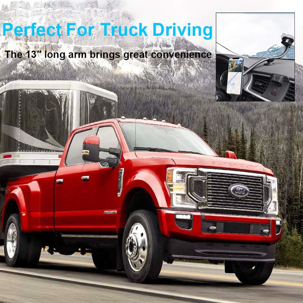 - Upgraded Flexible Arm: This magnetic phone holder for car features that 13" long gooseneck arm can be easily adjustable to different bendable position, so the phone holder for truck won’t block your driving view and avoid obstructing CD display, vent. It also features that keep your phone within reach always.