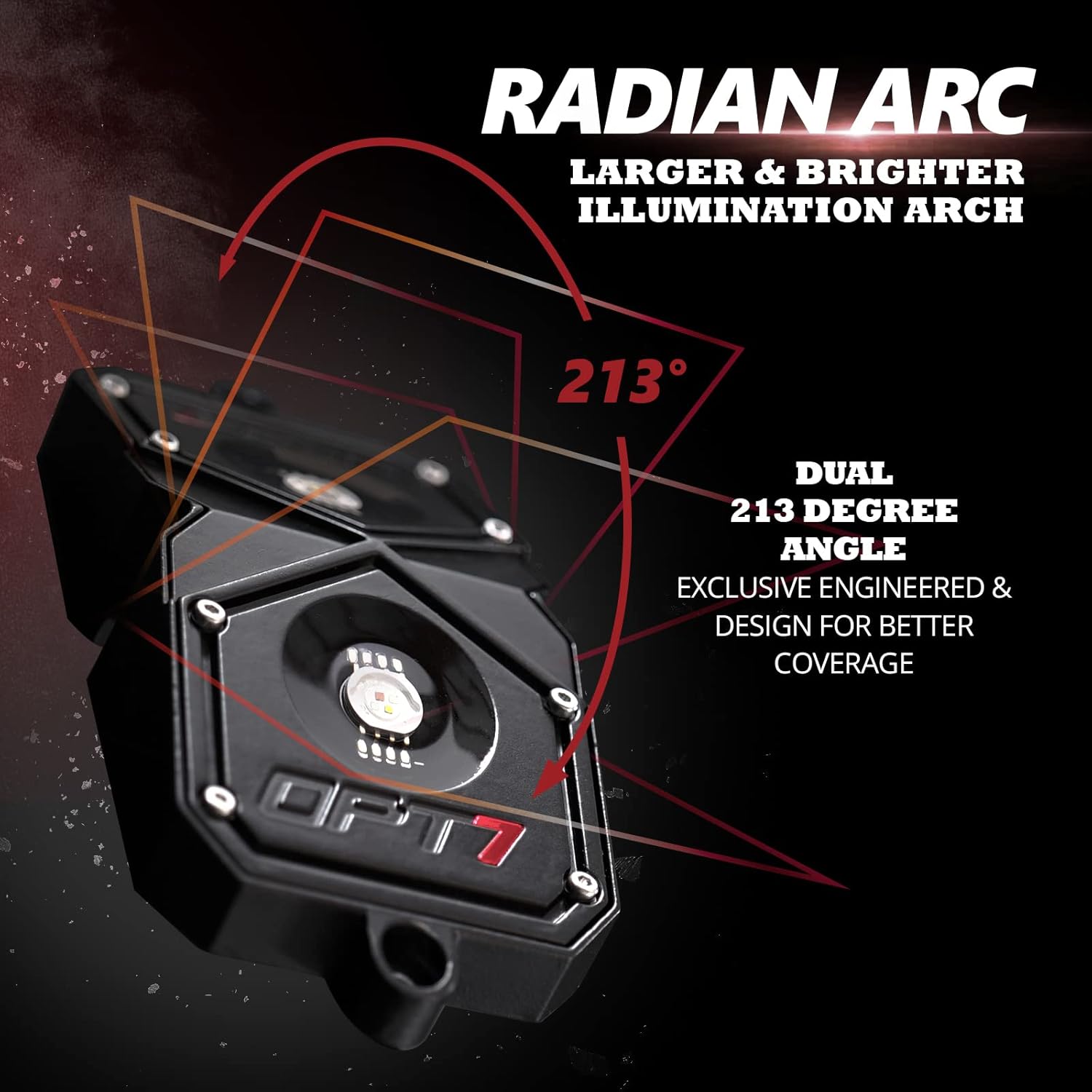 OPT7 Quantum Pro RGBW LED Rock Lights with Bluetooth APP and Remote Control, 4 Pods Wide Angle Multicolor Neon Underglow Lighting Kit with Extension Wire, IP68 Waterproof for Offroad Truck ATV UTV SUV