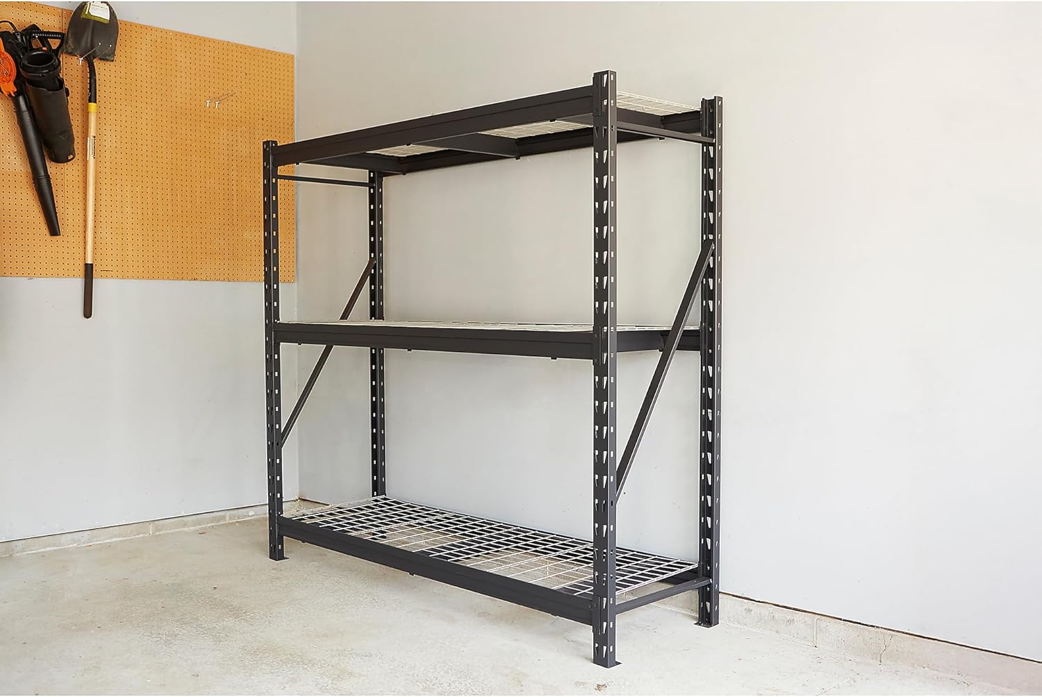 - VENTILATED DESIGN: Featuring a wire mesh deck, these garage racks for storage allow air to circulate around the stored contents. As garage shelves, they are particularly beneficial for items requiring ventilation to prevent dampness and rust, and promoting air circulation to ensure your stored items remain in optimal condition.