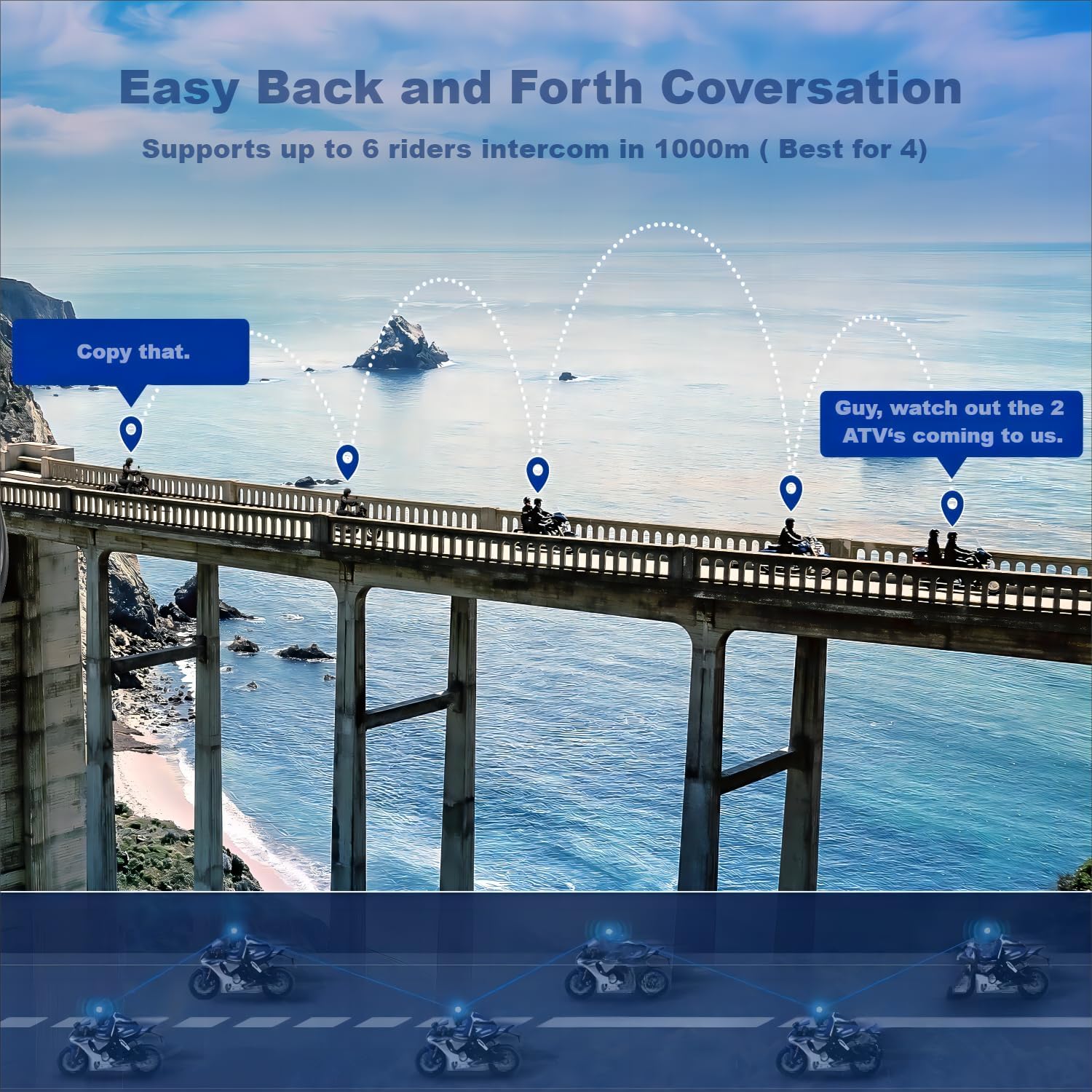 - ◼【6 Riders helmet to helmet communication system】Fodsports FX6 Bluetooth motorcycle headset's intercom feature allows 6 riders/passengers to talk with each other at 1000 meters range. FX6 Bluetooth for motorcycle helmets' large integrated button and slim design fits most helmets' contour shape, perfect for riding travel with your family and friends.