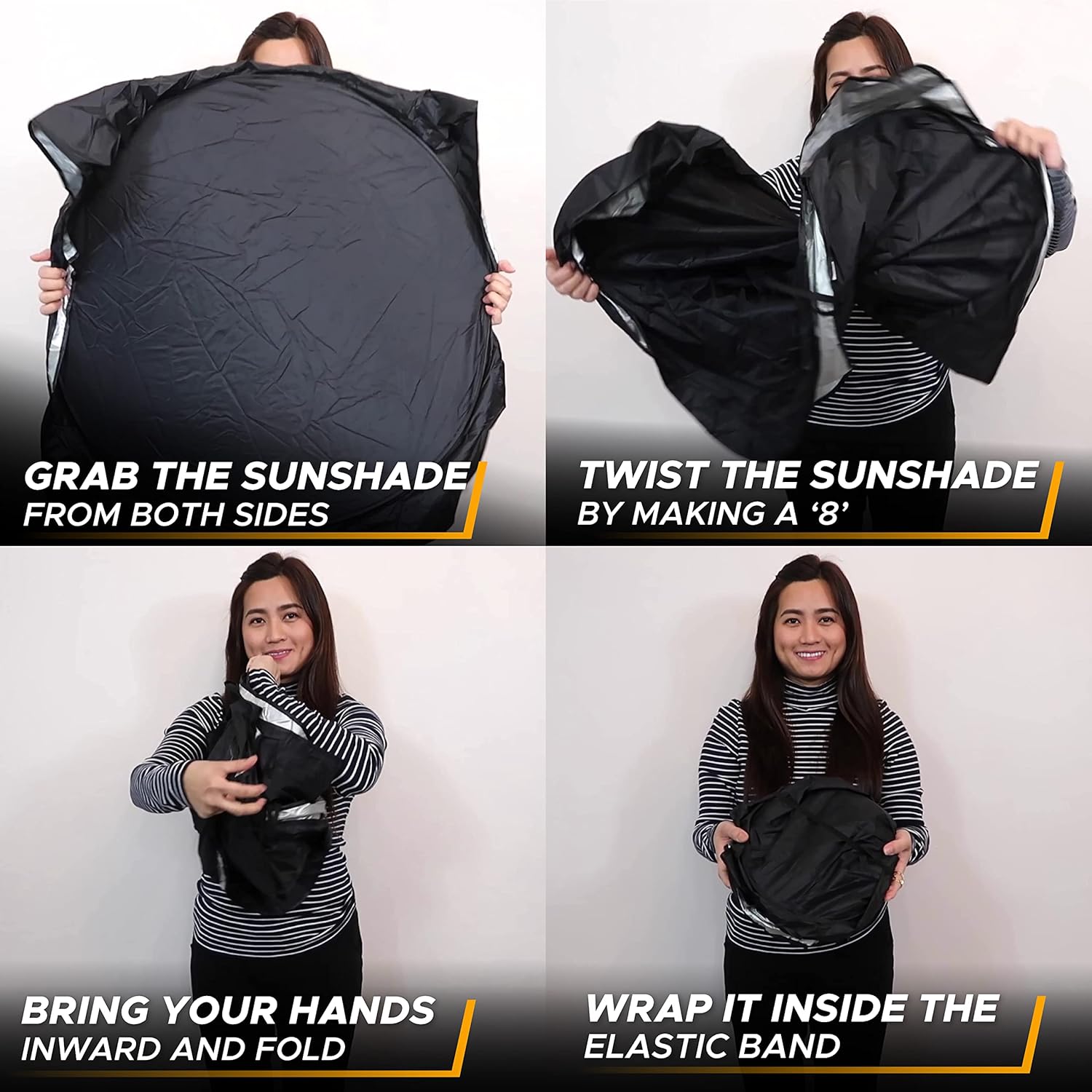 - Easy to Use and Fold: Designed for convenience, our cool window sunshade is easy to pop up, install, fold away, and store in the included pouch. This versatile Jeep windshield sun shade is perfect for everyday use.