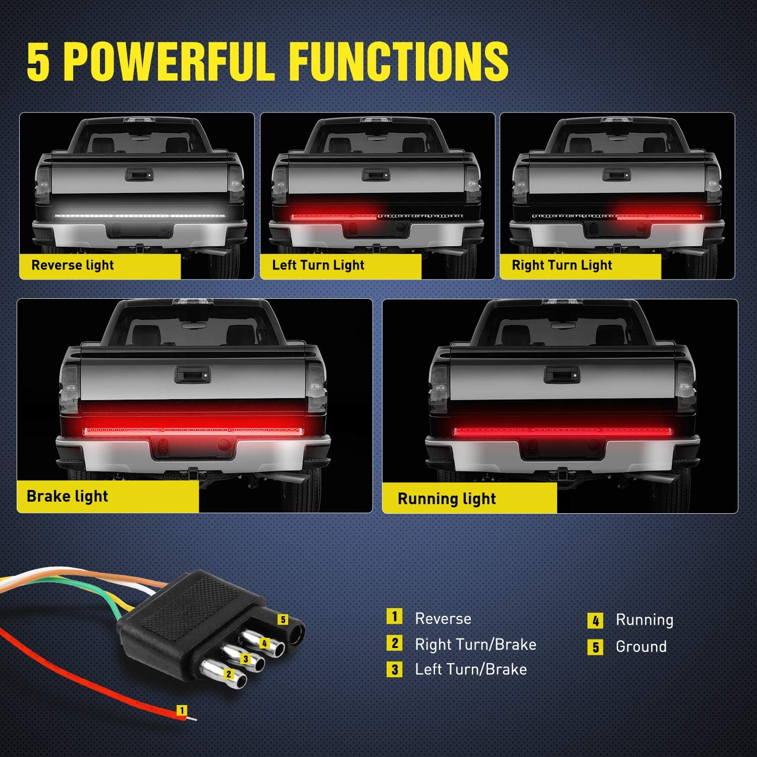 Nilight 48”/49” LED Tailgate Light Strip 90 LED Red/White for Running Light Brake / Turn Signal / Reverse Light,2 Years Warranty
