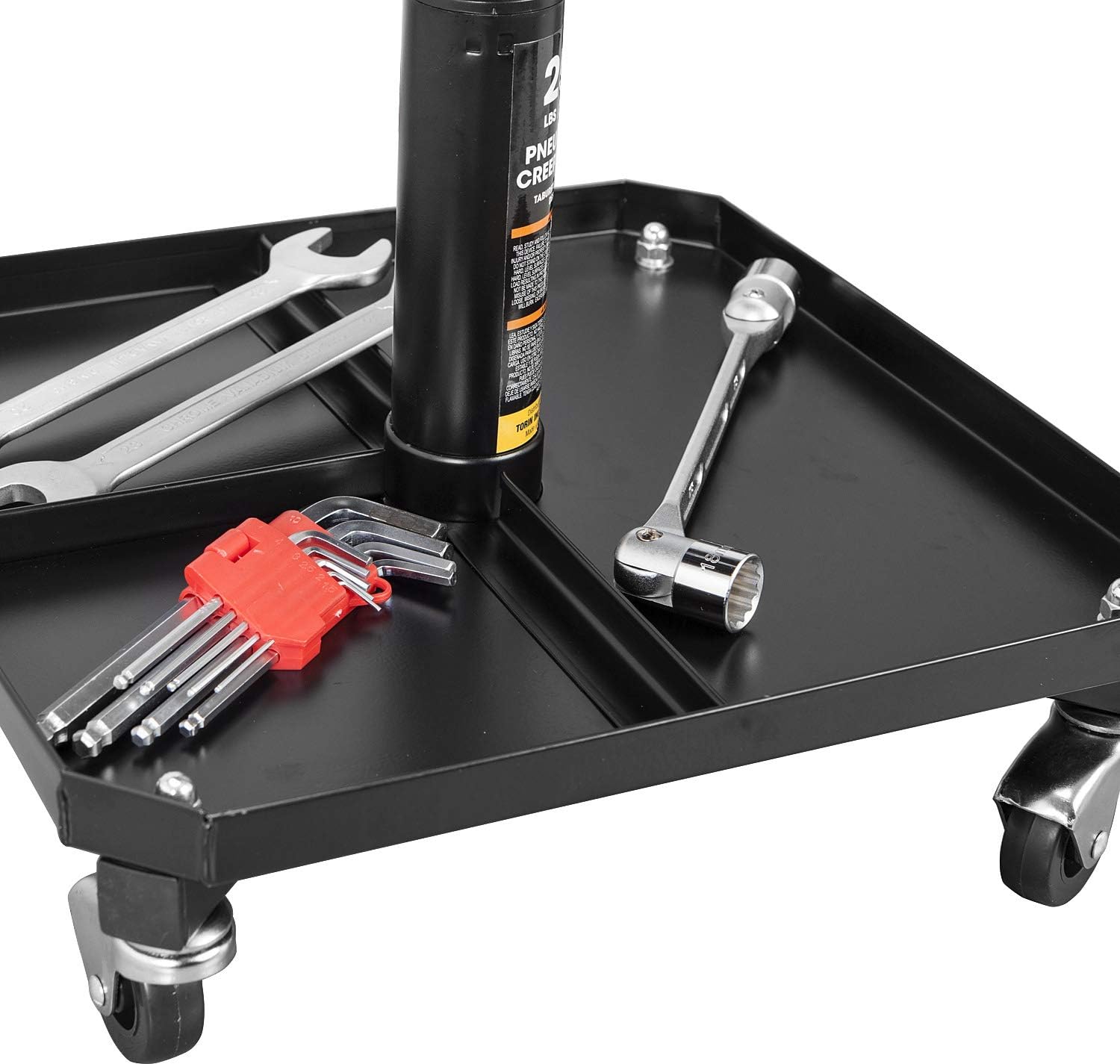 - Large, segmented tool tray storage keeps your tools and equipment within quick reach