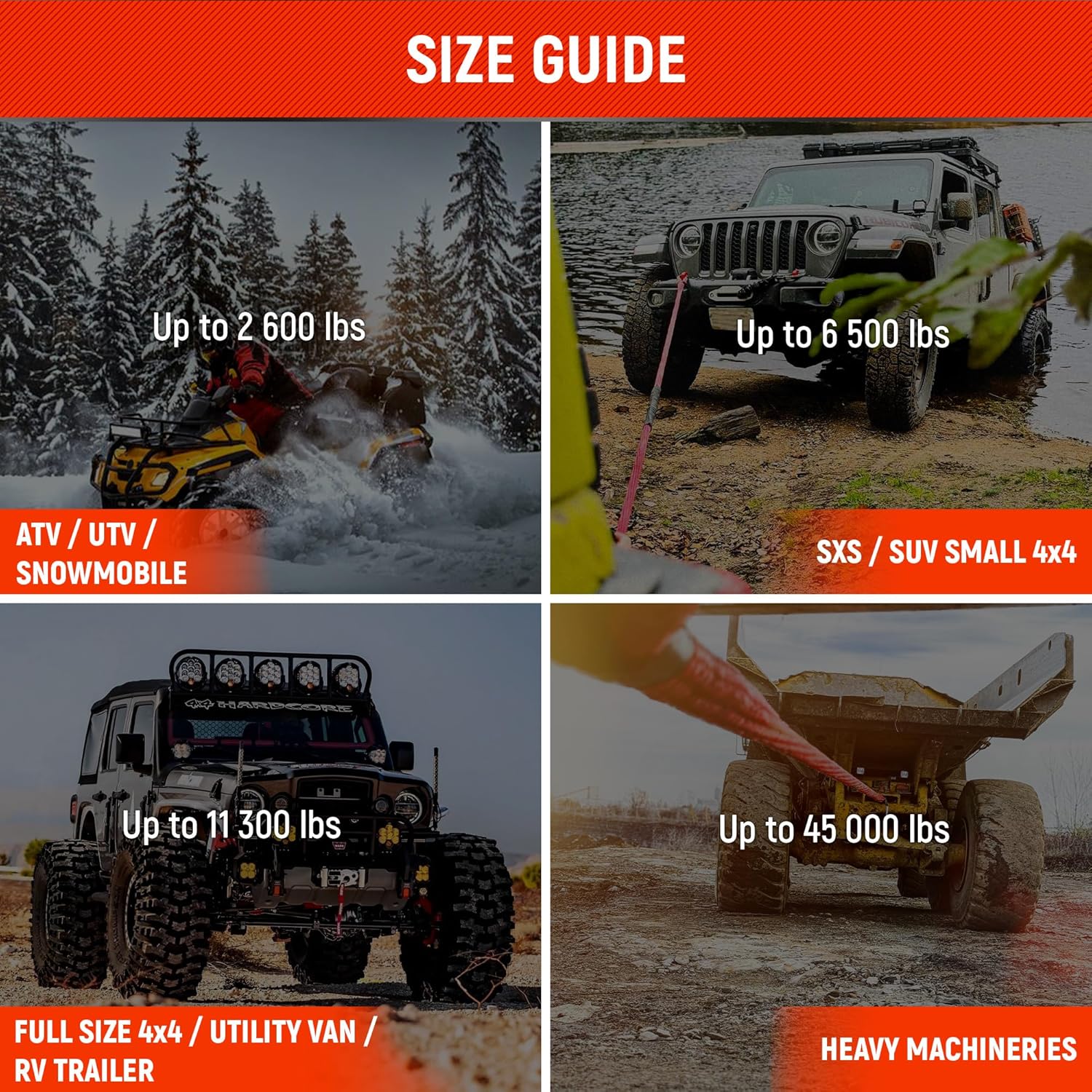 - Authentic USA Spectra Fiber Soft Shackles with a minimum breaking strength of 20700 lbs and a working load limit of 7000 lbs. Extra durable UV water-resistant 100% Double Diamond Braid Nylon Kinetic Recovery Rope with a minimum breaking strength of 19200 lbs and a working load limit of 6500 lbs.