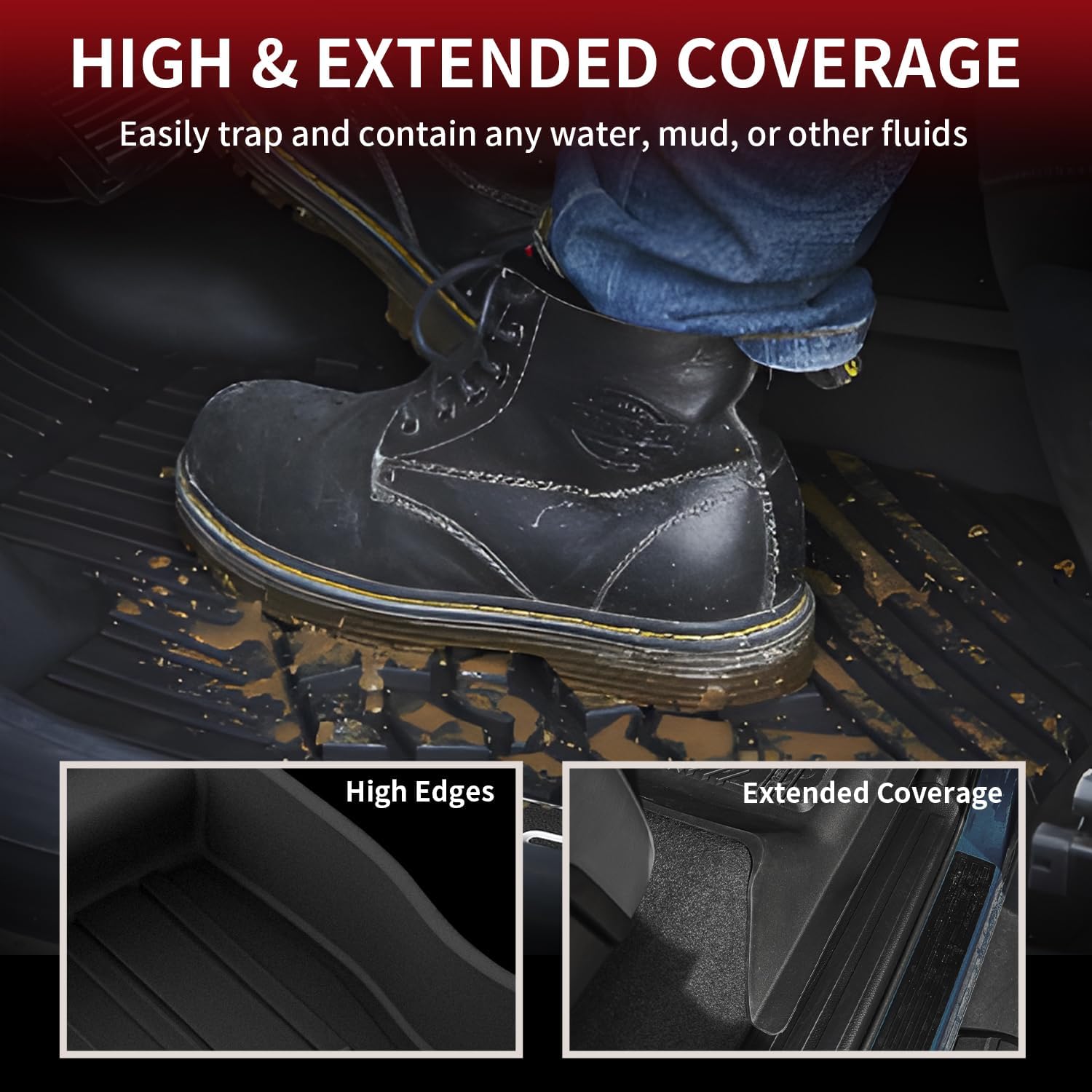- FIRM YET FLEXIBLE - These durable Tundra floor mats Raised edges all the way around and have been upgraded to the use of innovative material, allowing our floor liners to last long, and way more durable that they won't curl or end up buckling.