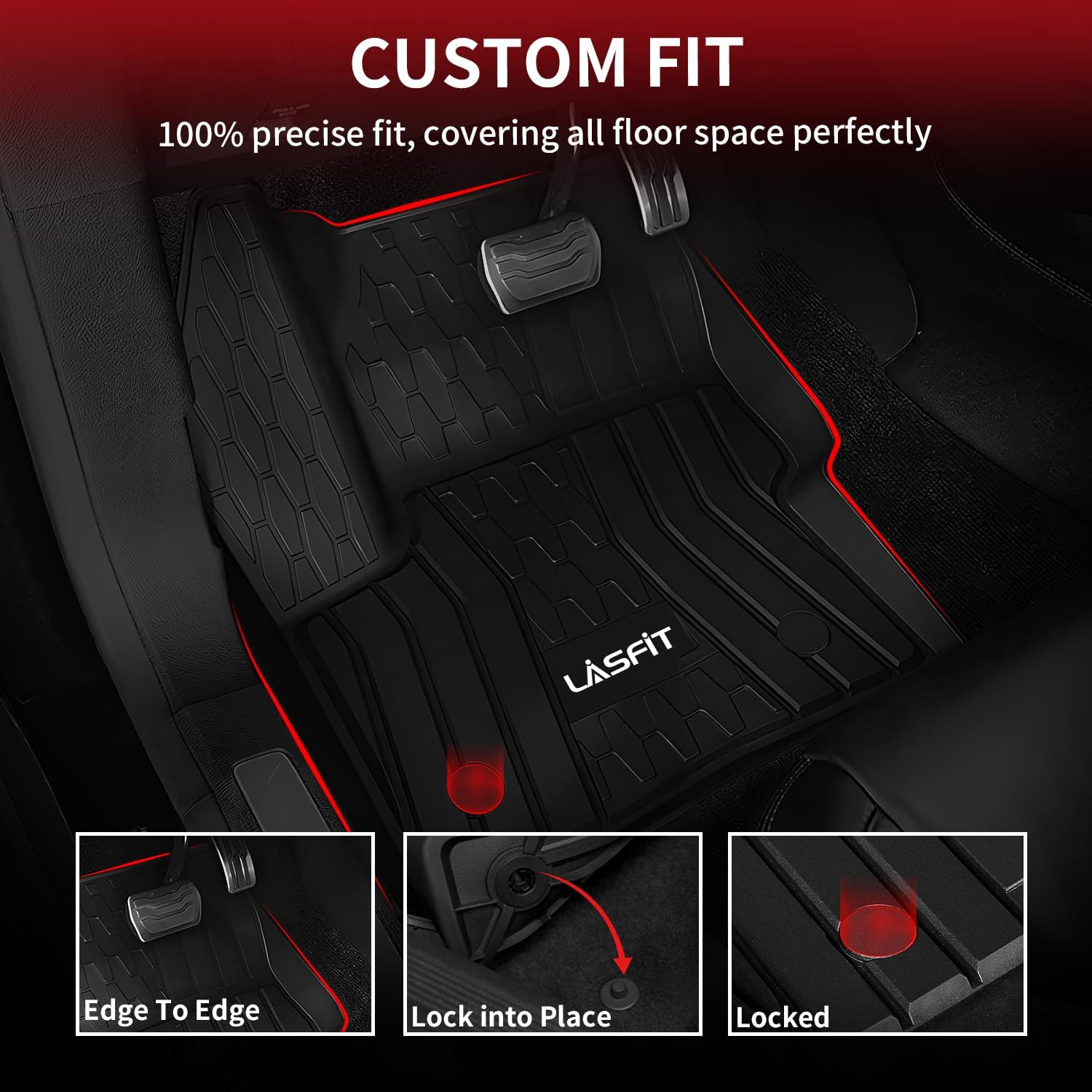 LASFIT Floor Mats Fit for Lincoln MKC 2019 2018 2017 2016 2015 TPE All Weather Floor Liners Custom Fit Car Mats 2015-2019 Accessories, 1st and 2nd Rows Floor Mats - Black