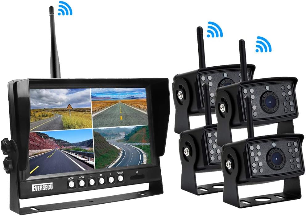 EVERSECU 4pcs Digital HD 1080P Wireless Car Backup Camera with 9 inch 4ch Quad Display Monitor/Car DVR/Dash Monitor/Vehicle Video Recorder for RV/SUV/Van/Pickup/Truck/Trailer Rear/Side/Front View