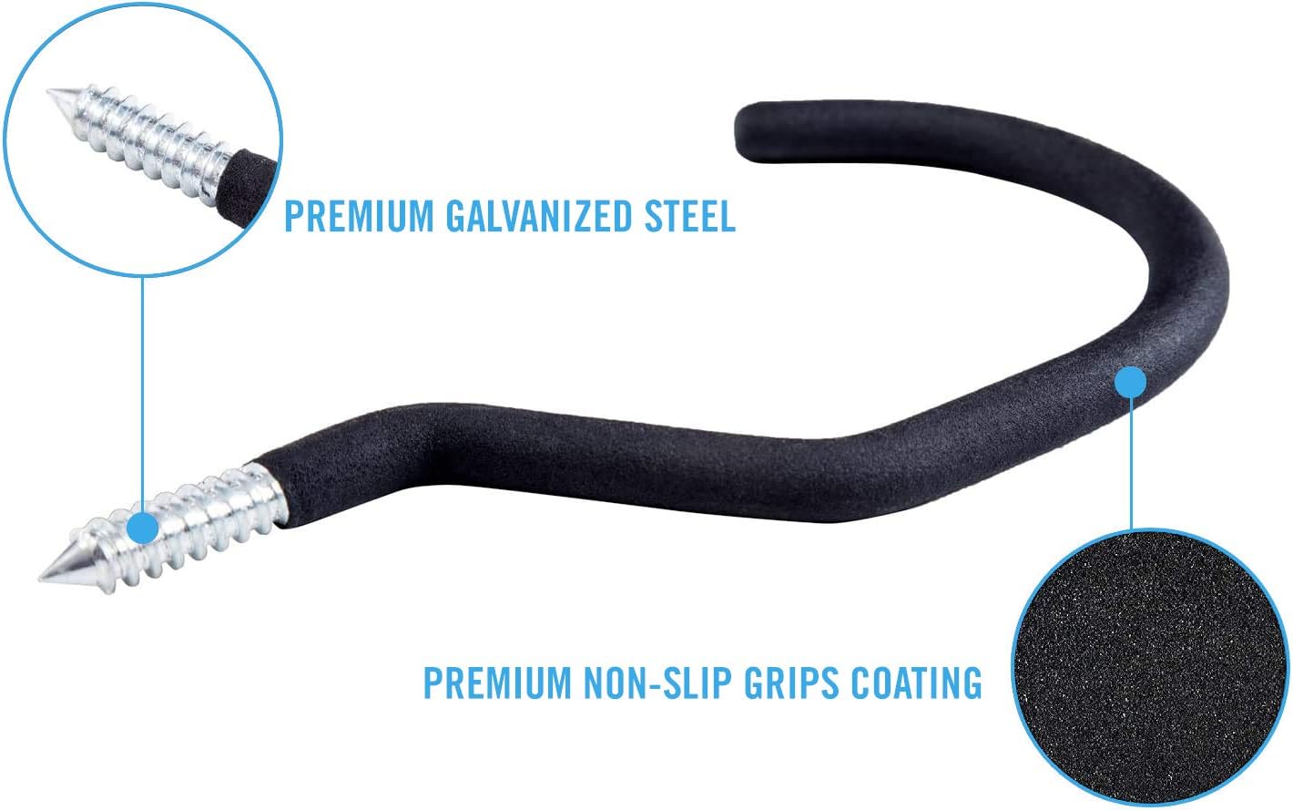 SMARTOLOGY 8 Pack Bike Hanger Storage Hook Rack, Rubber Coated Heavy Duty Large Screw in Ceiling Hooks for Garage Wall and Ceiling Bicycle Storage, Utility Tool Hanger (Black)