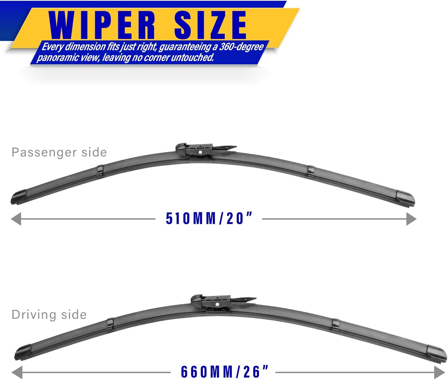 - 【WORRY-FREE SHOPPING】 2Pcs wiper blades 26"+20" and Instruction Manual. One Year warranty! Refund or return anytime in one year, Long life, smooth engagement.